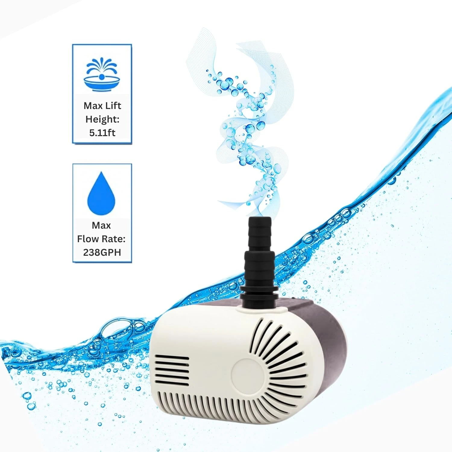MULTI-PURPOSE USE – Perfect for desert coolers, aquariums, hydroponics systems, indoor fountains, garden waterfalls, and small ponds – a versatile pump for everyday needs.