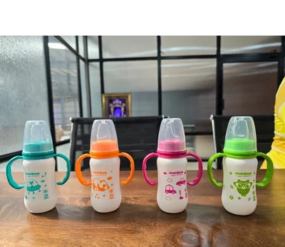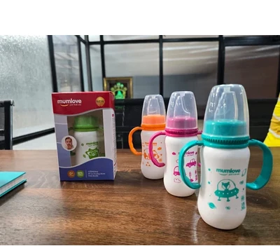 A baby bottle, nursing bottle, or feeding bottle is a bottle with a teat (also called a nipple in the US) attached to it, which creates the ability to drink via suckling. It is typically used by infants and young children, or if someone cannot (without difficulty) drink from a cup, for feeding oneself or being fed.