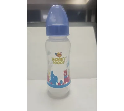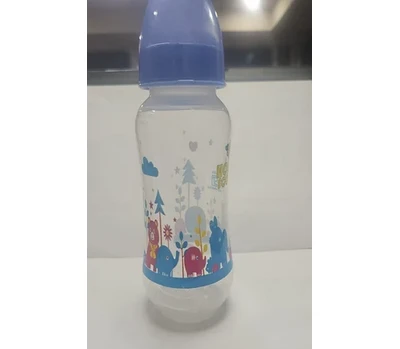 Baby feeding bottles are typically made from lightweight, durable, and transparent plastic, often polypropylene (PP) or, for older bottles, poly carbonate (PC), which can contain BPA, a chemical used to harden plastics.