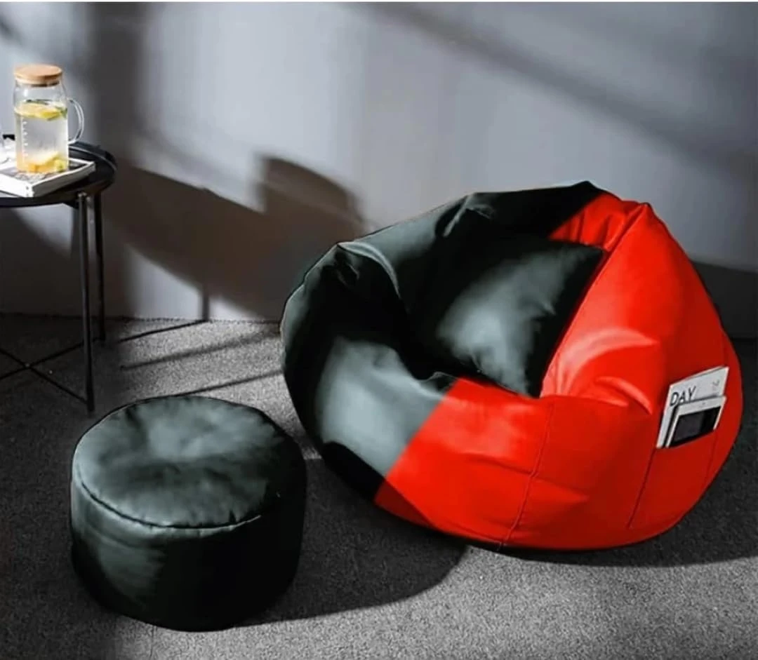 4XL Bean Bag Cover Set in Faux Leather with Footrest & Cushion – No Filling, Ideal for Home, Office & Gaming Lounge, Red & Black (