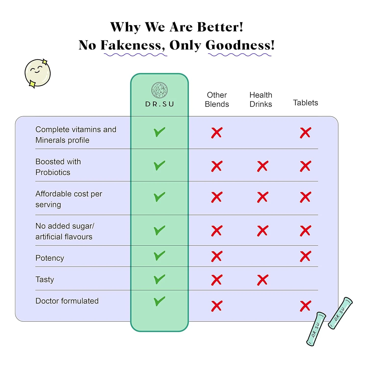 Boosted with skin, hair and gut essential micronutrients for daily nutritional requirements