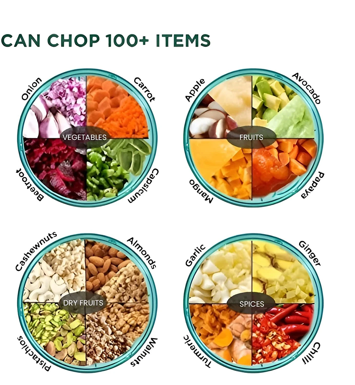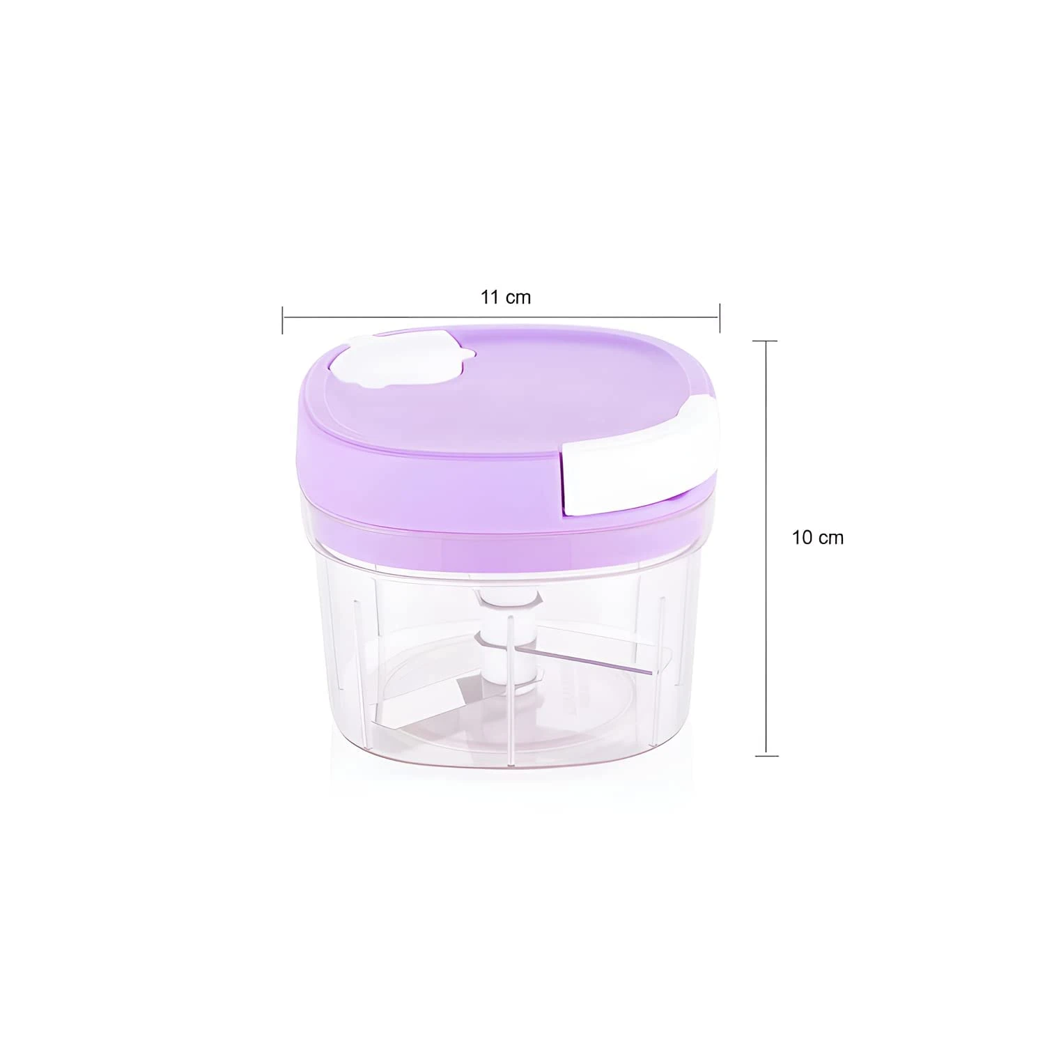 • Features a circular stainless steel blade system surrounded by durable plastic housing for quick and easy