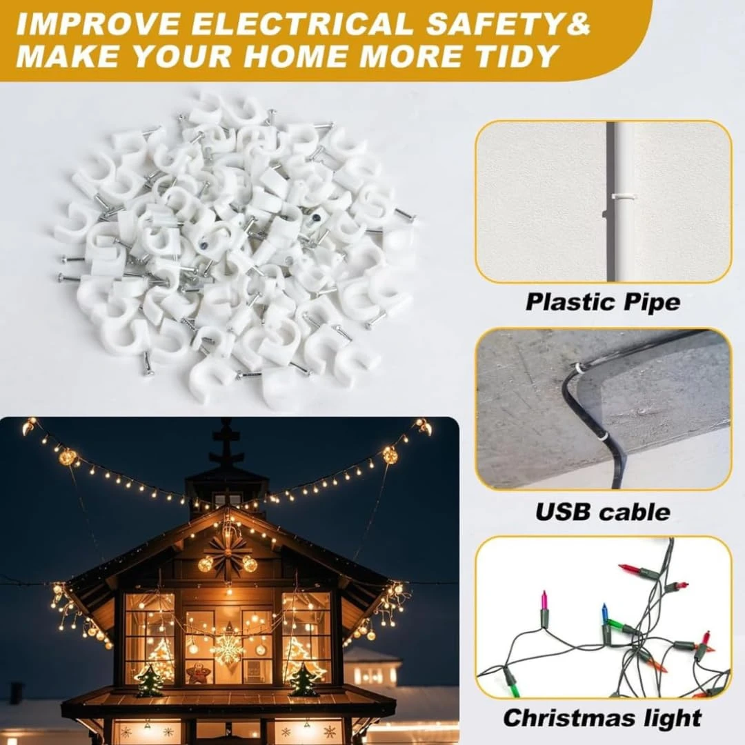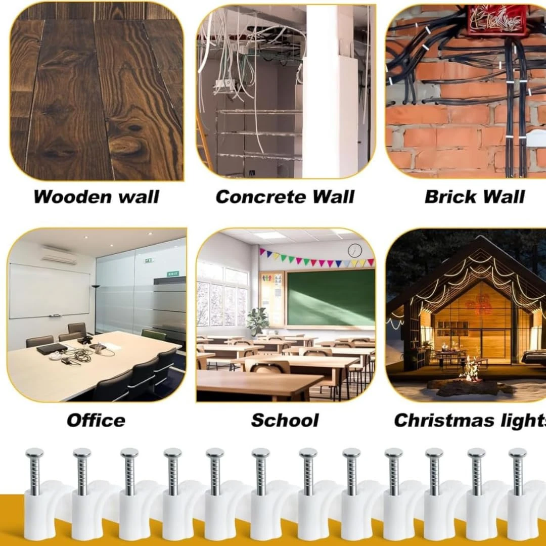 Cable Clips with Metal Nails: Features durable metal nails for secure, long-lasting wall mounting.