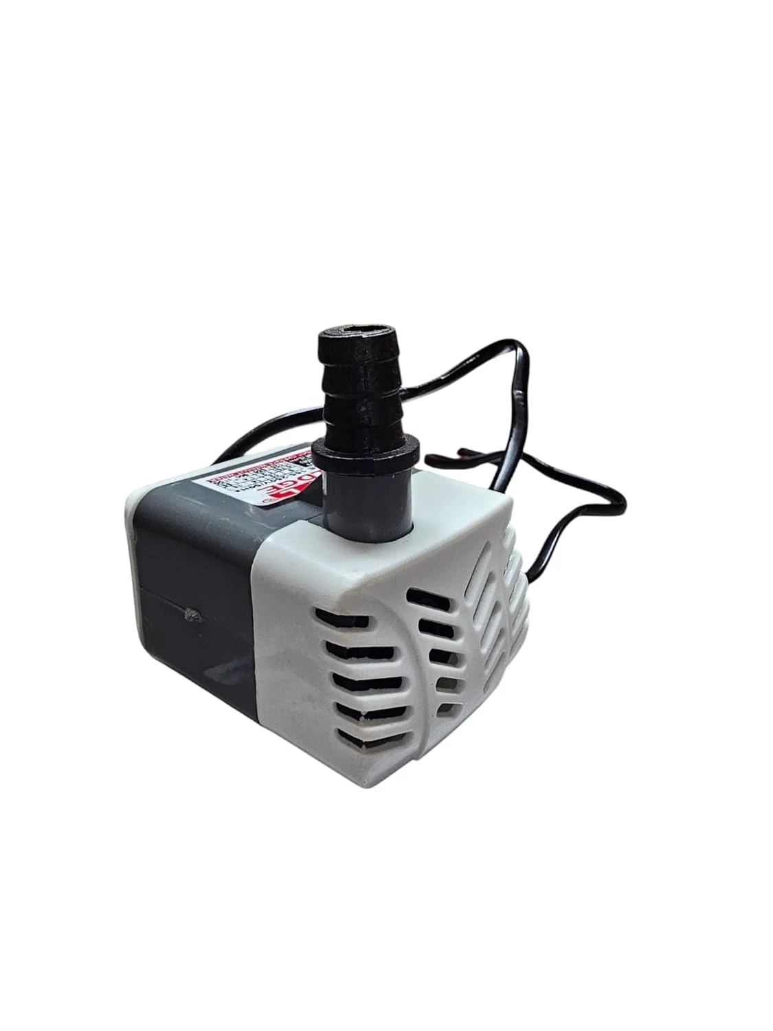 Transform your aquatic displays with this compact and efficient submersible water pump. Perfect for small fountains, aquariums, and water features, this versatile pump combines reliable performance with quiet operation. The durable construction features a two-tone grey and white housing with strategic ventilation slots for optimal cooling. The pump comes equipped with a standard black barbed outlet fitting for easy tube connection. Its compact size makes it ideal for space-constrained installations, while the integrated power cord ensures convenient placement. Whether you're maintaining a tabletop fountain or powering a small water feature, this pump delivers consistent water circulation with minimal energy consumption. The robust motor housing protects internal components while maintaining efficient operation, making it a dependable choice for your water pumping needs.