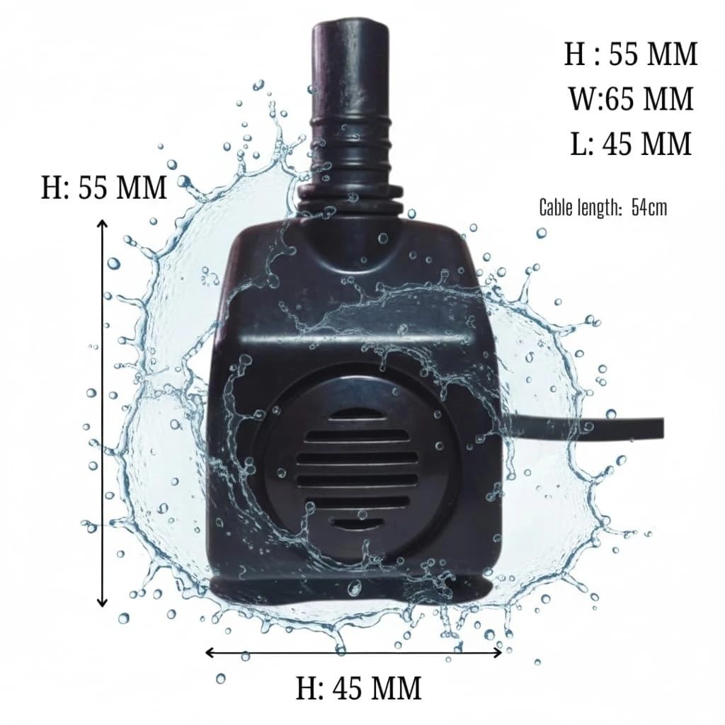 📏 Compact Design: Small size (5.5 × 4.5 × 4.5 cm, 6.2 cm with nozzle) fits easily into desert coolers, aquariums, and small water containers without taking up space.