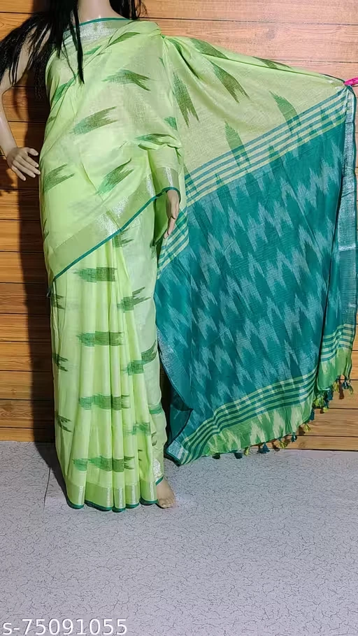 A R FABRICS ikat pattern design Handloom cotton sarees with blouse pcs