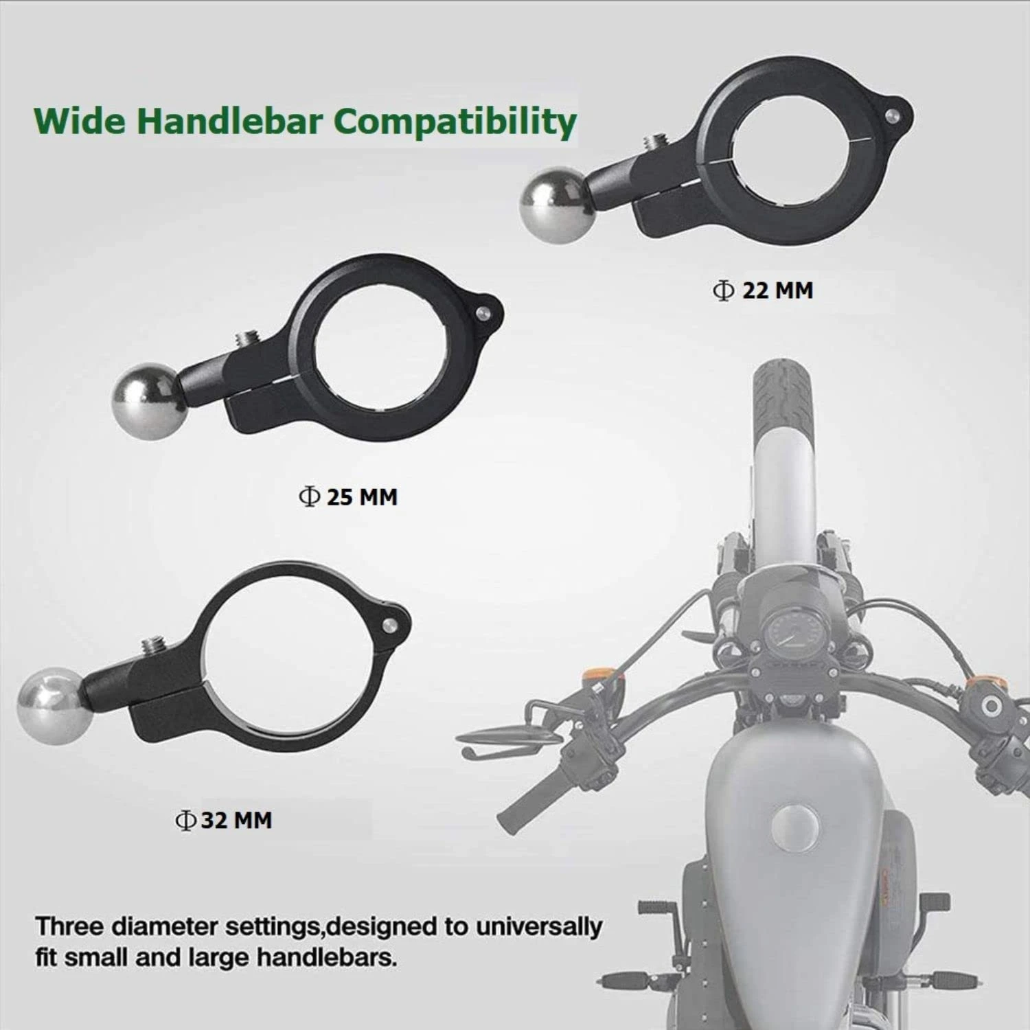 Aluminium Handlebar Mount with 17mm Ball Head | CNC Machined Fix-Type Buckle for Motorcycle, Bike, Scooter | Fits 22mm, 25.4mm, 32mm Bars | Vibration Resistant Mounting Bracket