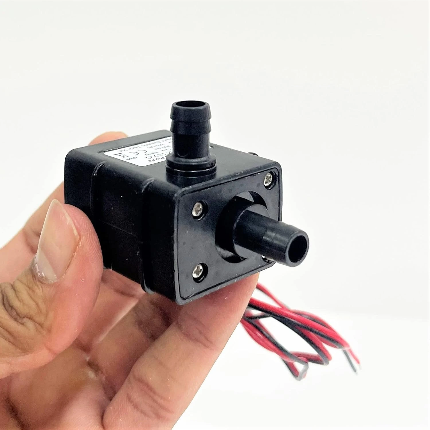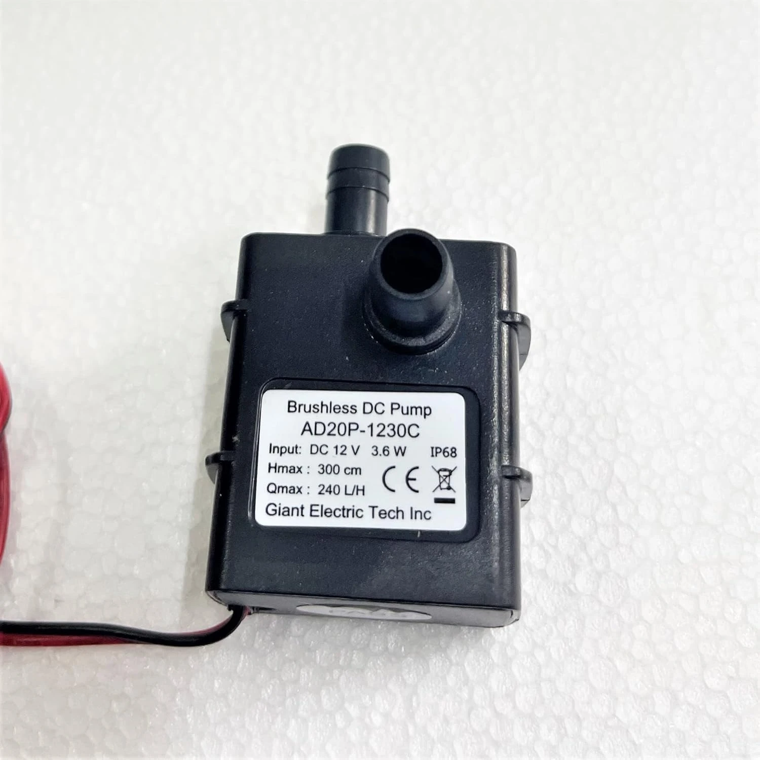 12V / 3.5W / 240L/Hr / 3Mtr Head Head Brushless, permanent magnetic rotor, maintenance-free and long lifespan Small size, high efficiency, low consumption and noise Stator and circuit board sealed by epoxy resin and completely waterproof Working conditions: applying to indoor under temperature100°C Fluids: water, oil, gasoline, acid and alkali solution High temperature-resistant OEM and ODM services are provided Compliant with CE standard Lifespan: ≥30,000 hours Noise level: ≤40dB Pump materials: PC + ABS Condition of use: continuous Maximum working temperature: 60°C Rated voltage: 12V DC Voltage range: 3.5 to 12V DC Operating current: ≥350mA Water-resistant class: IP68 (can be submersible installed) Power supply: solar panel, DC electric source and battery .Weight: 50g