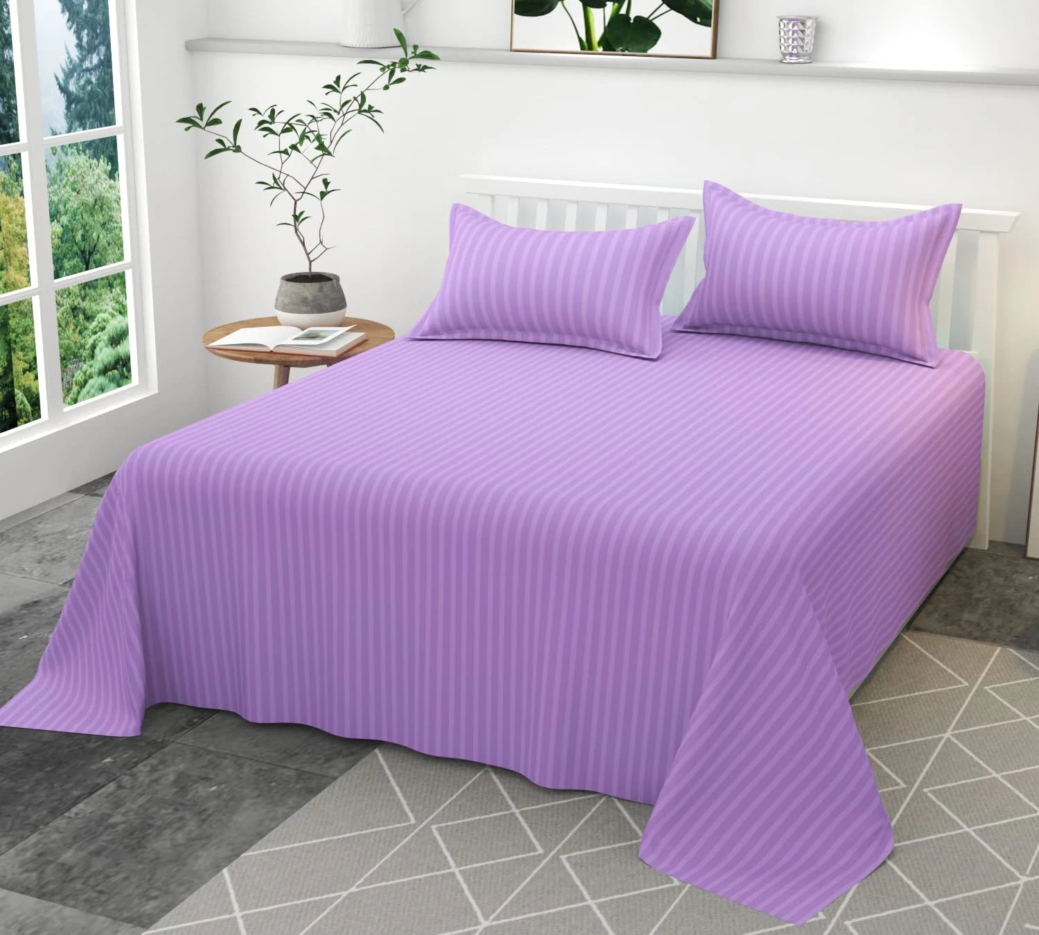 AS Enterprises Stylish and Comfortable Striped Queen Bed Sheet Set Striped Cotton Bedding Set, Queen Size 254x229 cm, 2 Pillow Covers Set 3 (Pack of 1)