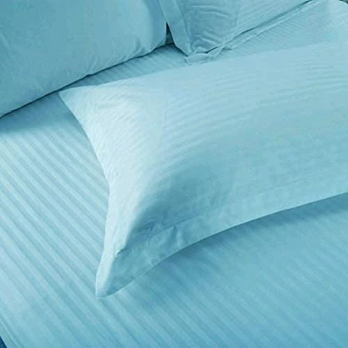 Queen size bed sheet set measuring 254 x 229 cm, perfect for standard queen-sized mattresses with ample coverage.  Premium cotton fabric with elegant striped pattern, offering breathability and comfort for a luxurious sleeping experience