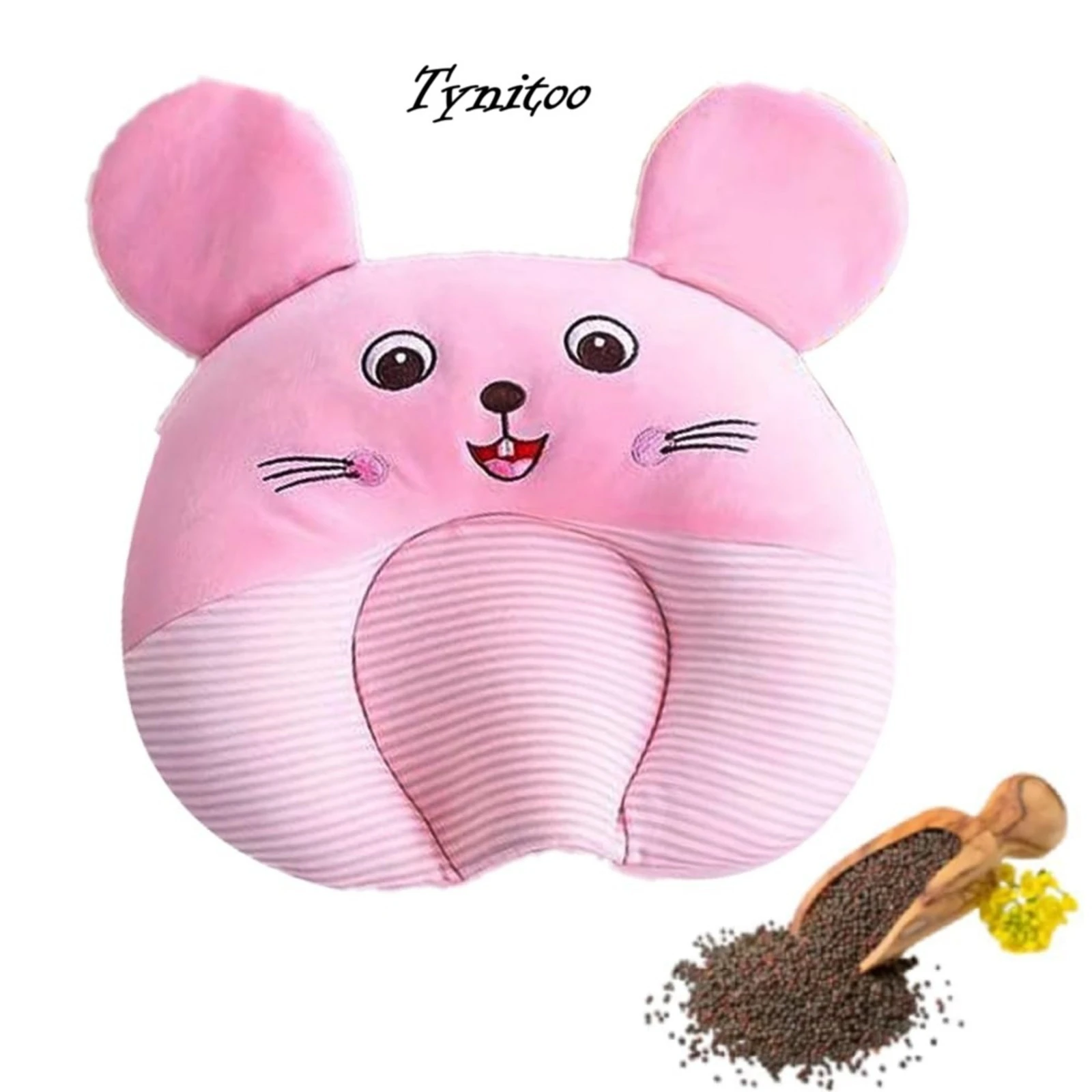 Baby Mustard Seed Pillow for Newborn (0–12 Months) | Soft Cotton Cover Infant Head Support Cushion for Round Head Shaping | Lightweight Cartoon Print Seed Pillow for Babies