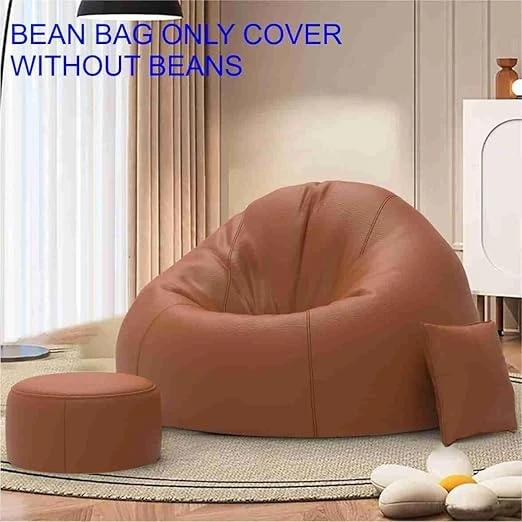 Faux Leather Bean Bag Cover Set with Footrest and Cushion