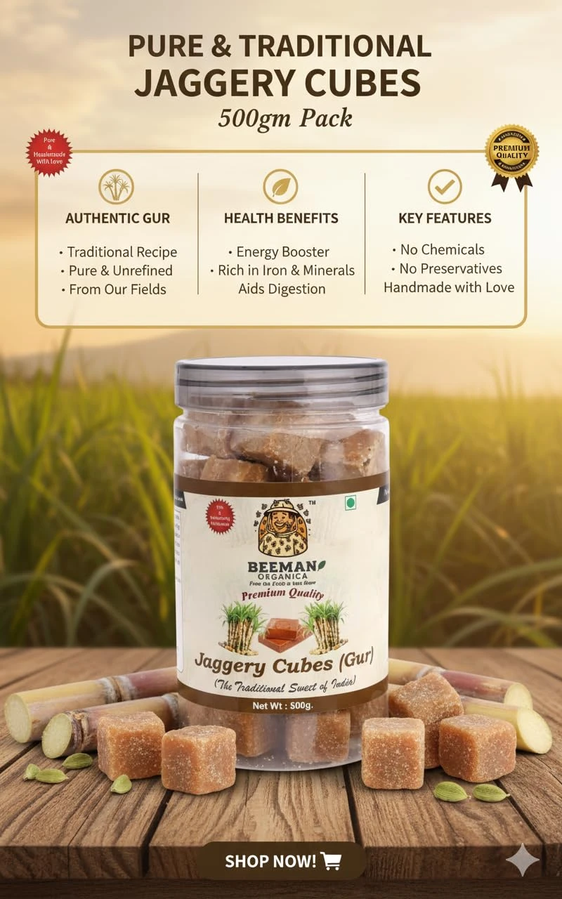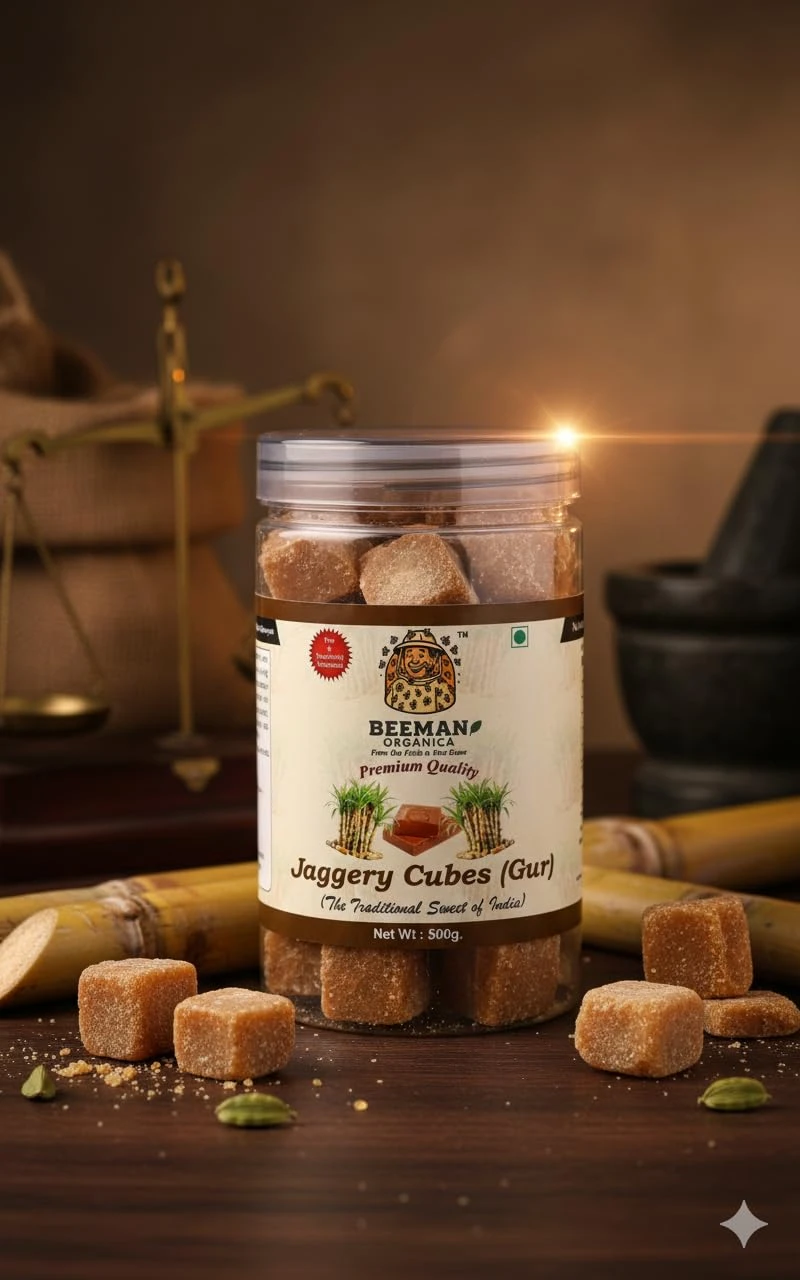 Beeman Organica Premium Jaggery Cubes (500 g) | Desi Gud | Organic & Chemical Free | Hand made (500 gm) pack of 2