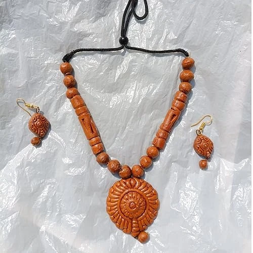 Terracotta Necklace Earrings Set for women and girls, Handmade Necklace Jewellery, Traditional Terracotta Jewellery Necklace Earring Set for party, occasion, Daily use