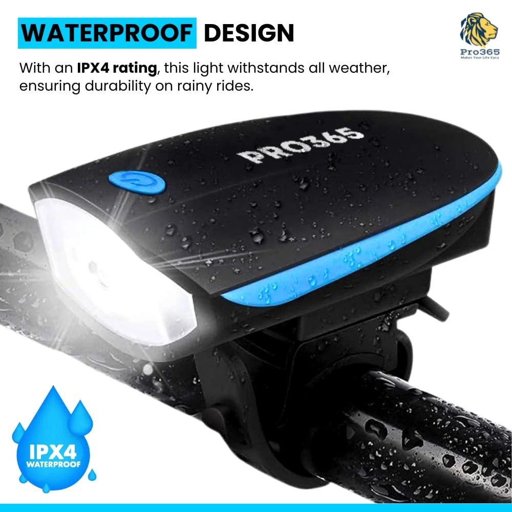 Bicycle Sharp Horn LED Light with Elevated Horn | USB Rechargeable | Fully Waterproof LED Front Light | 3 Light Modes | Loud Bell | 6 Months Brand Warranty