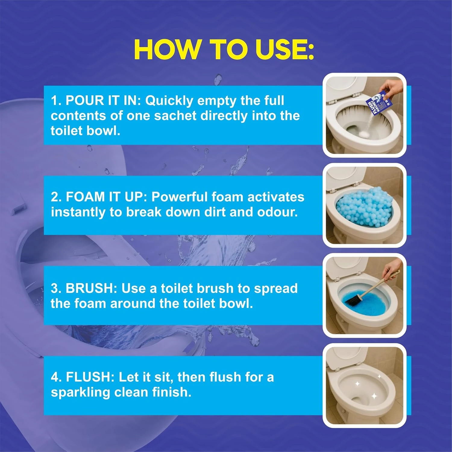 Water-soluble tablets that automatically clean and freshen your toilet bowl with every flush, providing continuous cleaning action