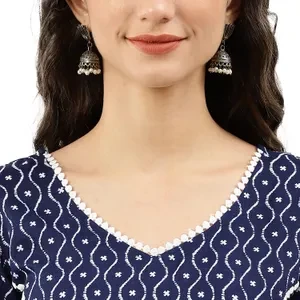 Blue Cotton Blend Kurta For Women