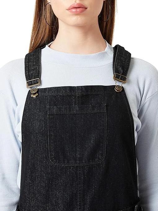 Women's Regular Fit Mid Rise Regular Length Denim Dungaree Size X-Large Color Velvet Black
