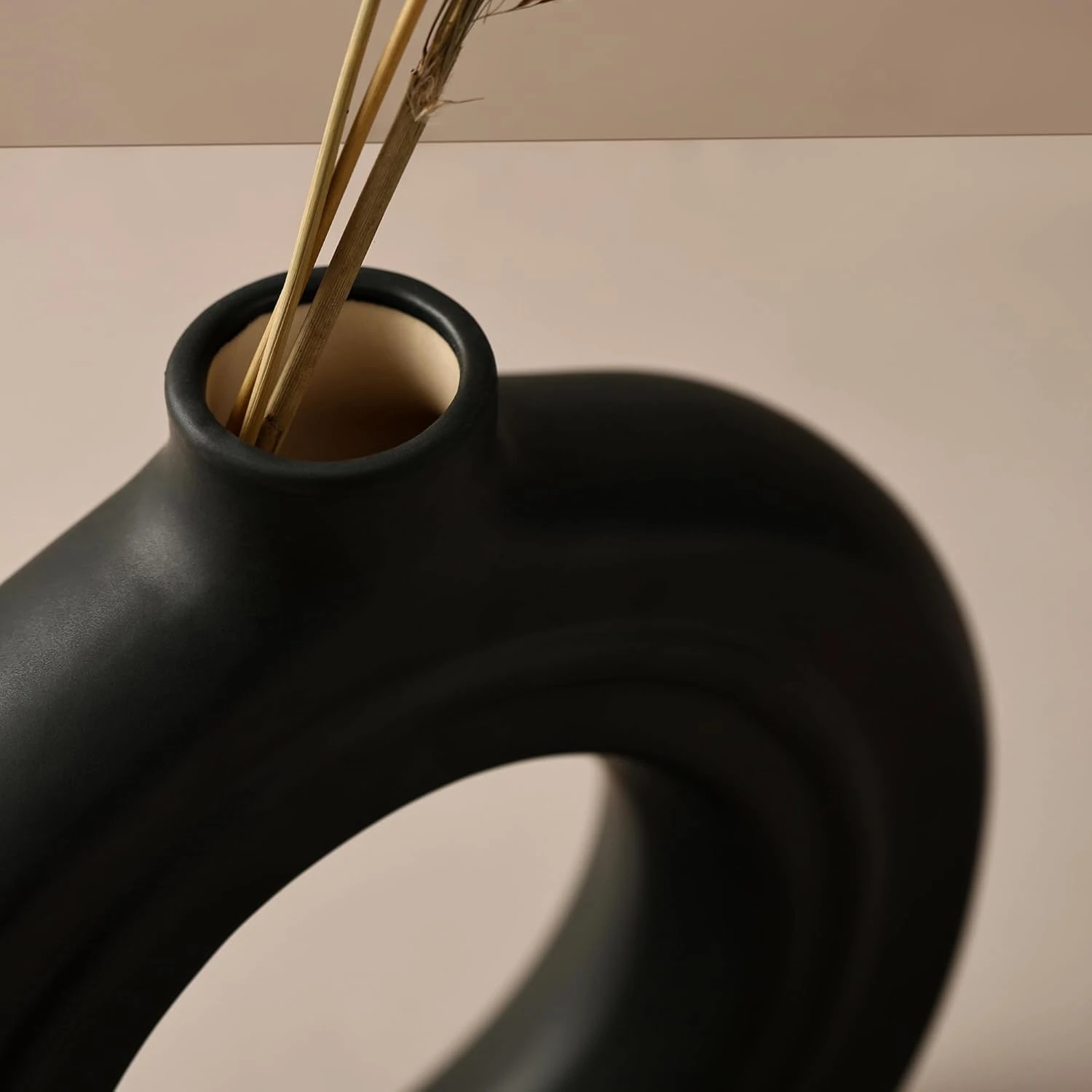• DESIGN: Unique donut-shaped ceramic vase featuring a hollow centre, perfect as a modern minimalist centerpiece for any space