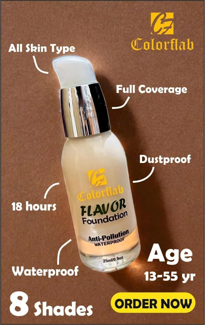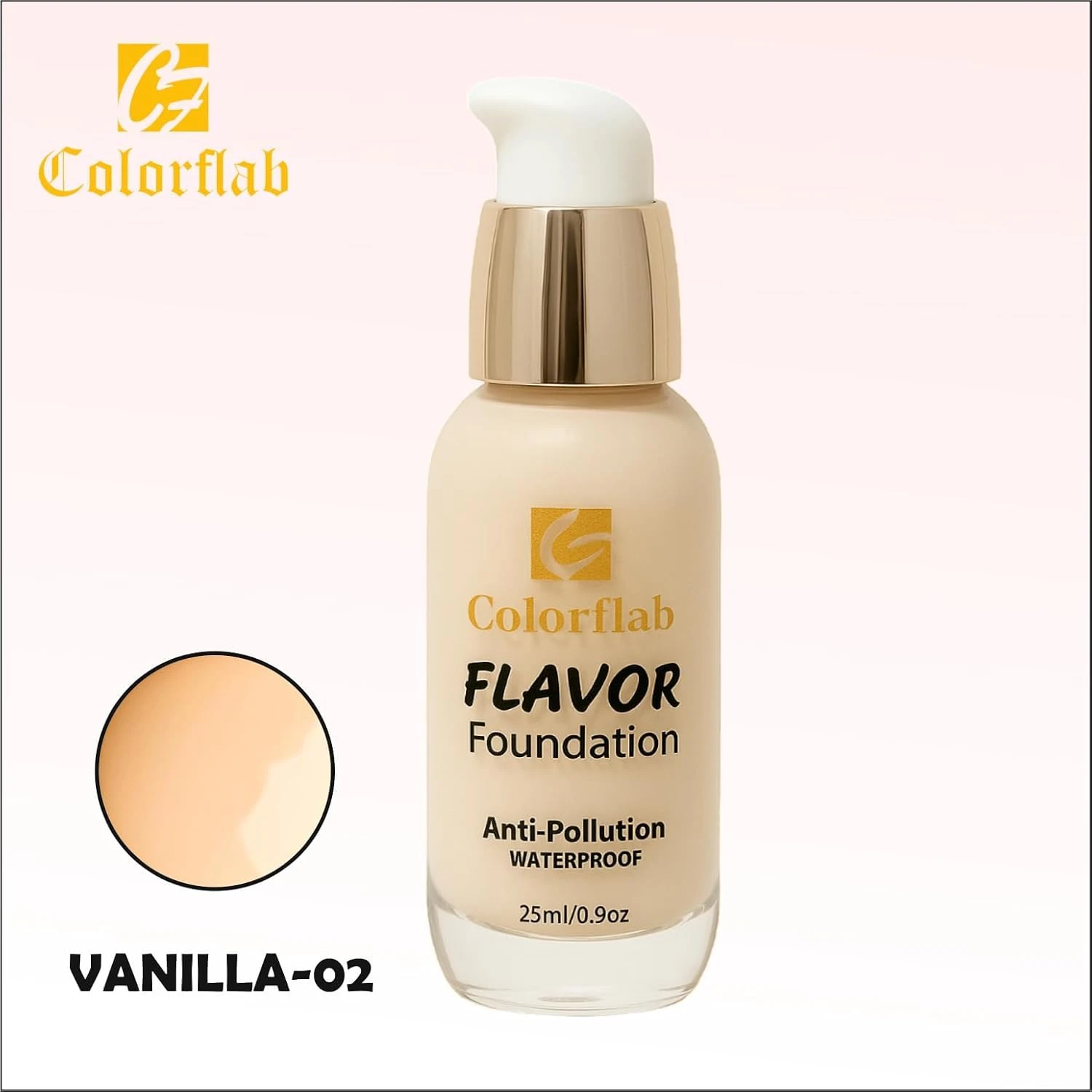 Colorflab Flavor Liquid Foundation, Oil Free, Luminious & Poreless, Full Coverage Blendable Waterproof, Long Lasting for 18Hours, Age 13 to 55 years Professional Range Foundation, 25ML