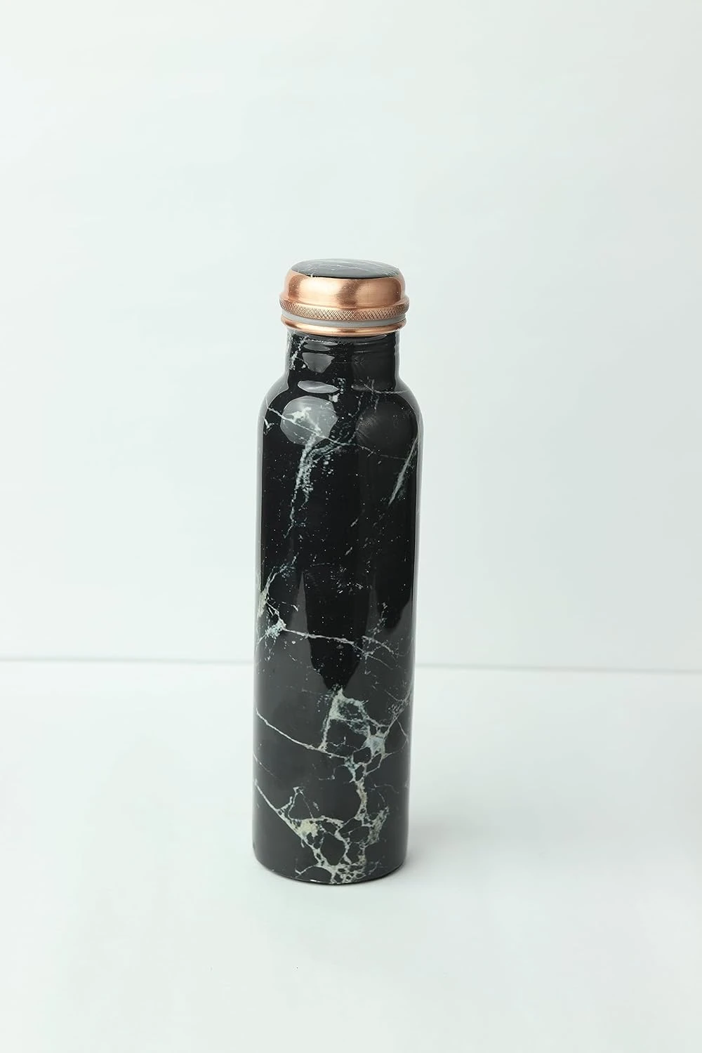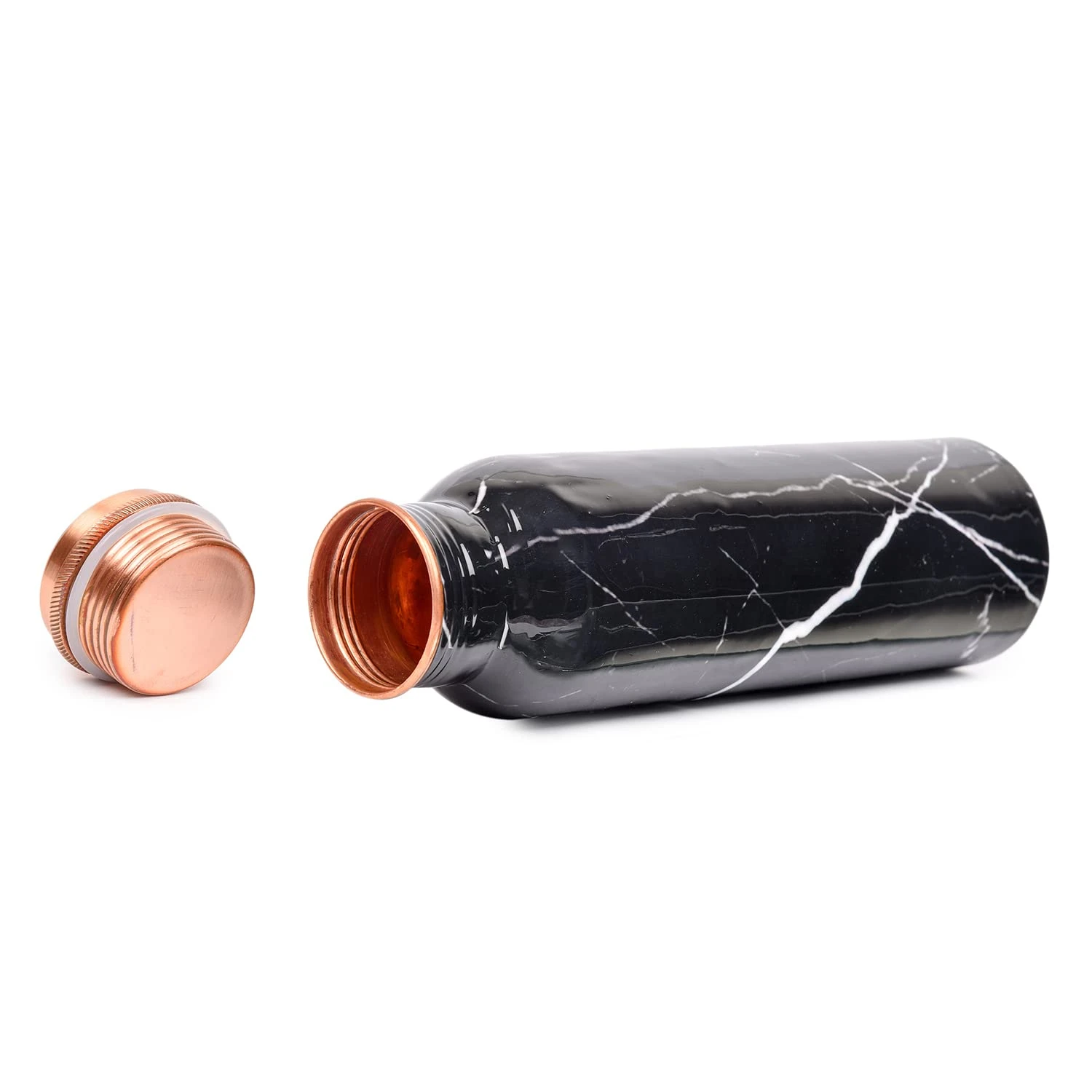 Copper Water Bottle 1 litre - Printed Copper Bottle With Advanced Leak Proof- Water Bottles Copper With Health Benefits (99% Pure Copper - Lab Tested) - Black Marble