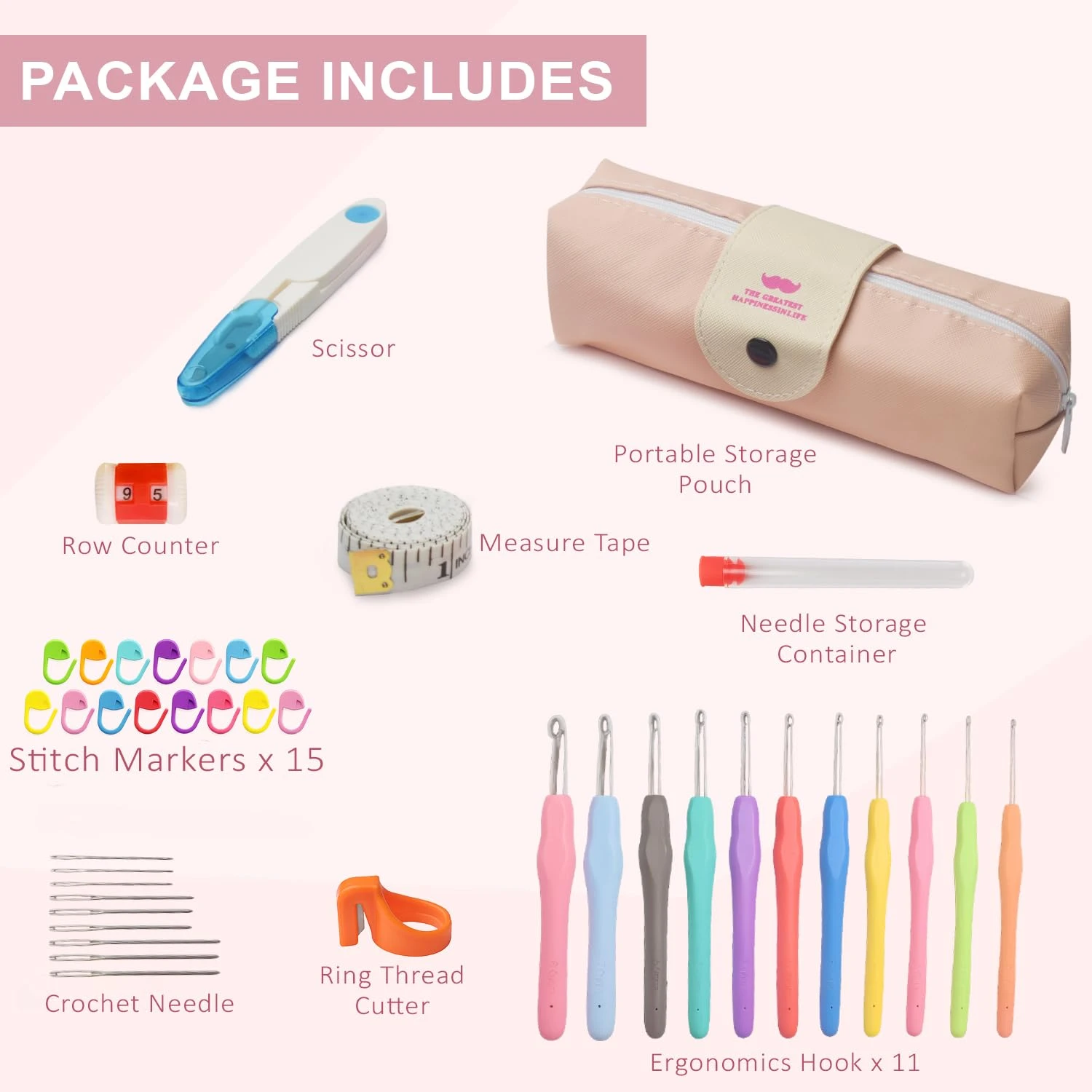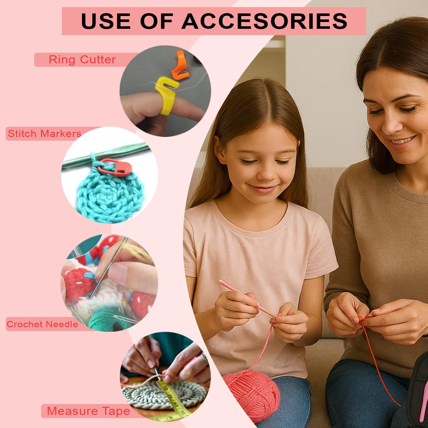 Durable Accessories: The kit includes stitch markers, yarn needles, and measuring tape, all made from high-quality materials to withstand regular use.