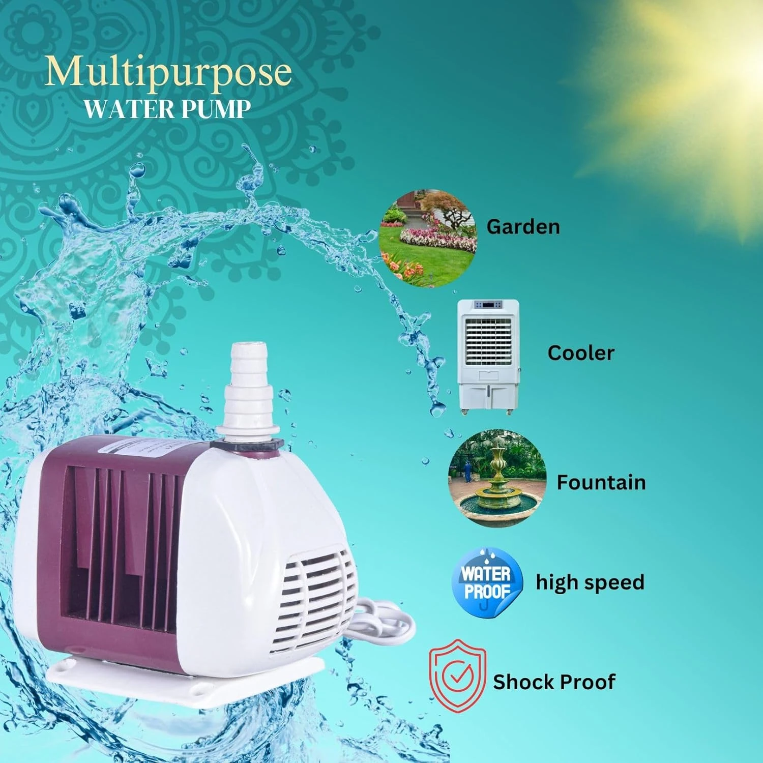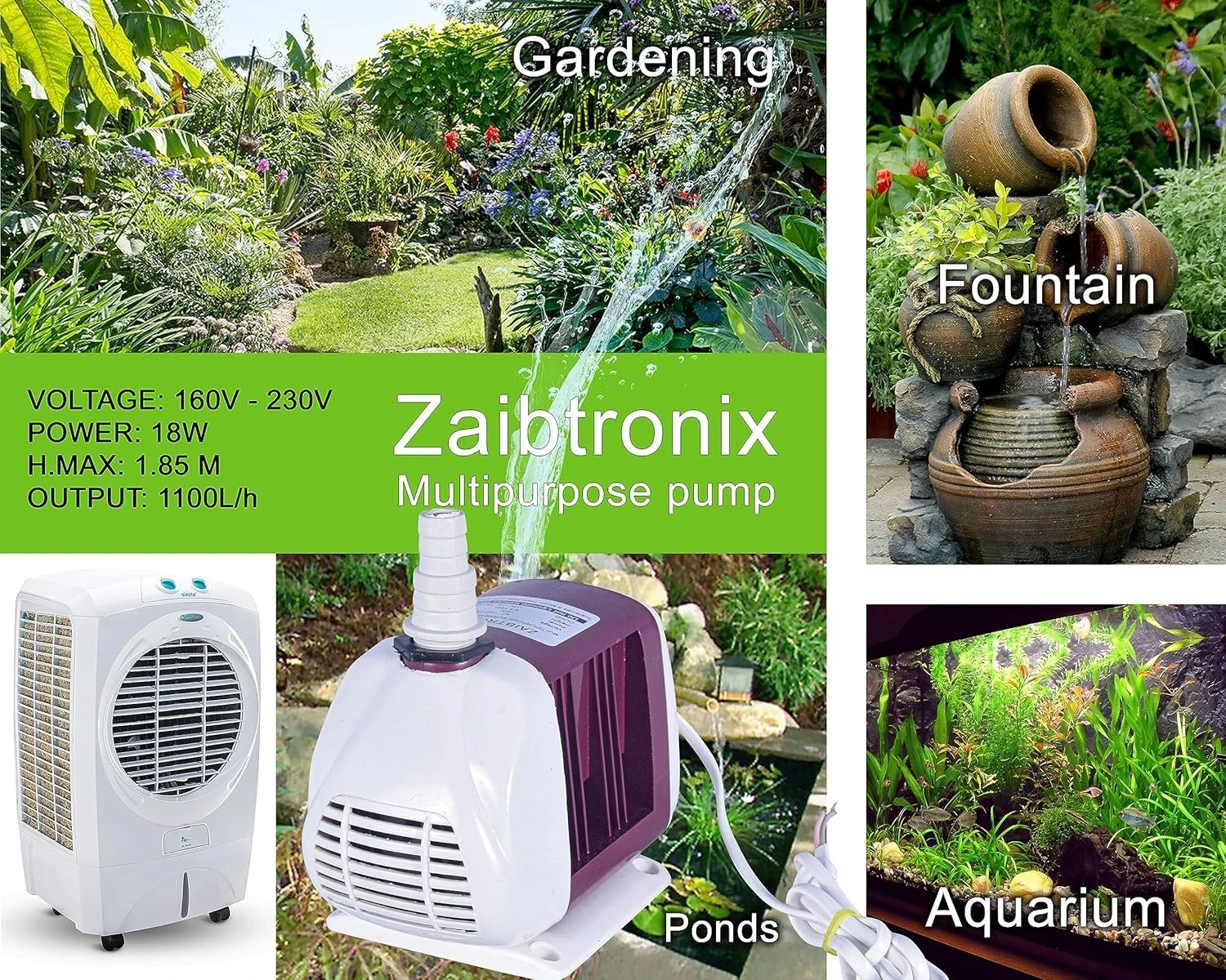 Heavy-Duty Multipurpose Pump – Suitable for desert coolers, aquariums, fish tanks, ponds, fountains, hydroponics, aquaponics, and water circulation systems.