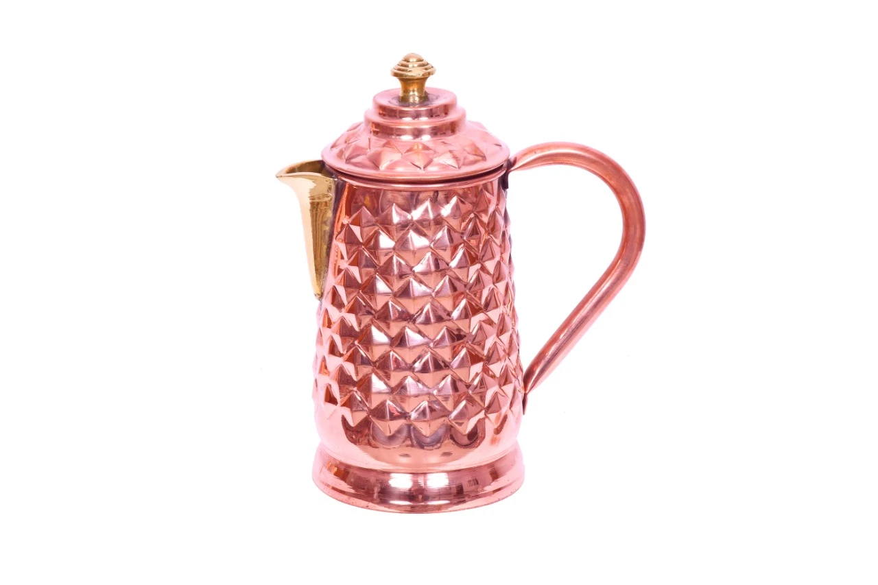 Crafted with high-quality metal, this jug is built for long-lasting use while maintaining its shine and premium look. The beautifully textured diamond design not only enhances its appearance but also provides a firm and comfortable grip. The sturdy handle and smooth spout ensure easy pouring, making it perfect for serving water, juices, and other beverages.