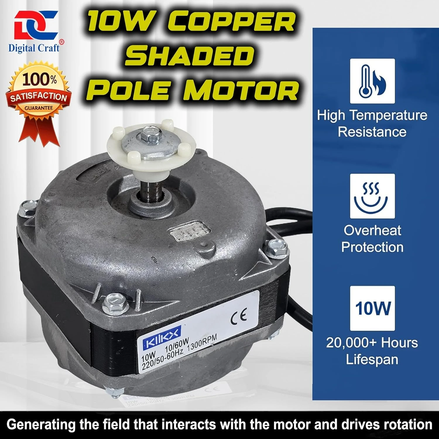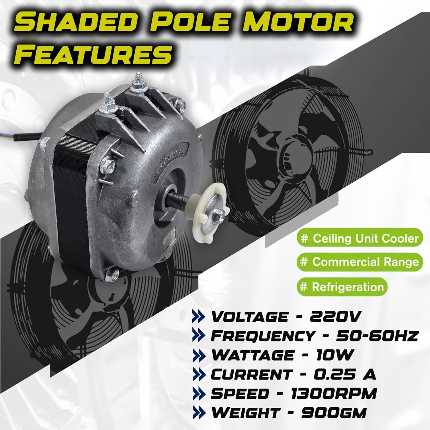 The 10W Copper Shaded Pole Motor is a universal replacement fan motor designed for refrigerators, deep freezers, coolers, visi coolers, and other cooling appliances. Operating at 220V AC with 1300 RPM speed, this motor ensures efficient air circulation and reliable performance. Built with a durable copper winding, it offers long-lasting use and energy efficiency. Ideal for technicians, repair shops, and DIY appliance maintenance, this shaded pole motor is easy to install and provides smooth, quiet operation for consistent cooling performance.