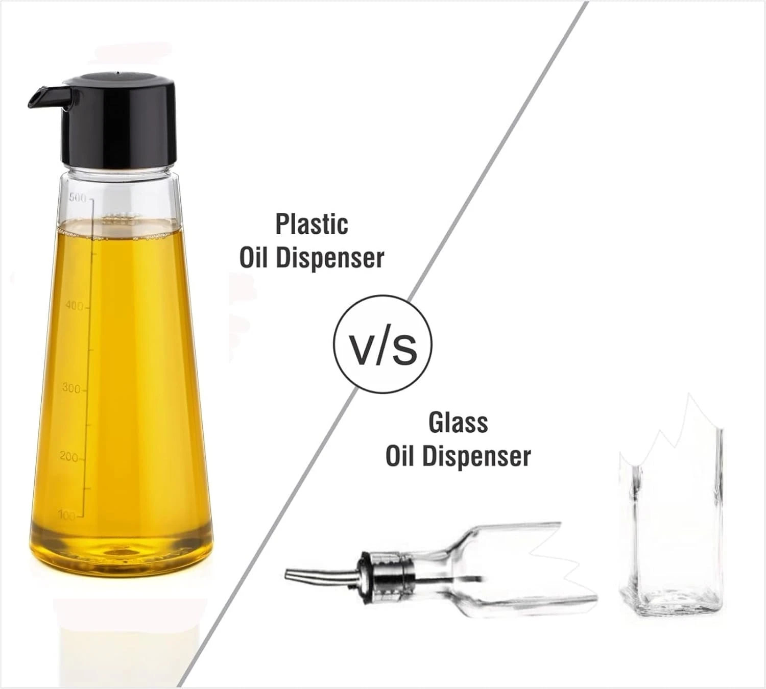 1. PREMIUM MATERIAL: Made from high-quality, food-grade plastic with a clear glass-like design that allows you to easily monitor oil levels and identify contents at a glance