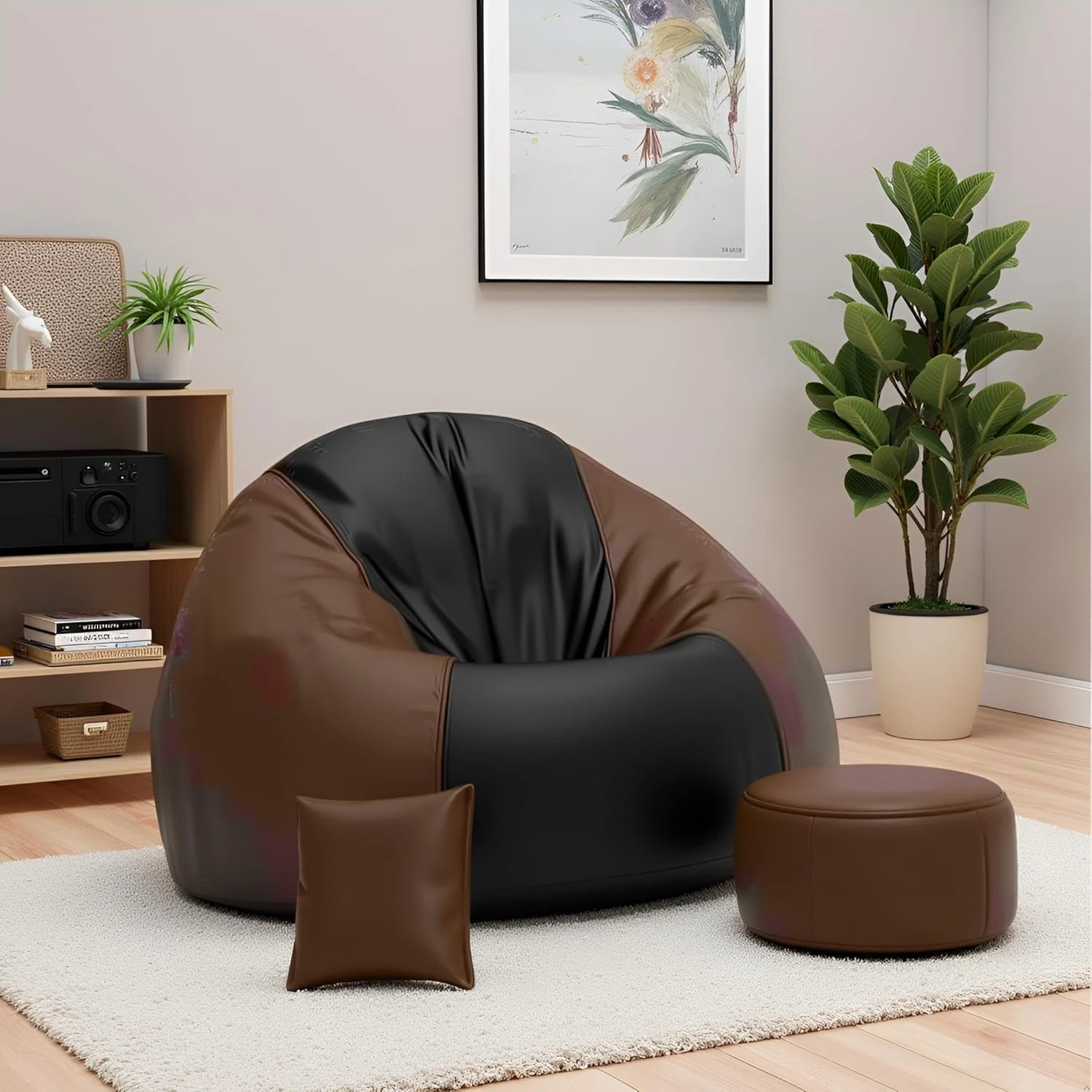 Faux Leather Bean Bag Cover Set with Footrest and Cushion