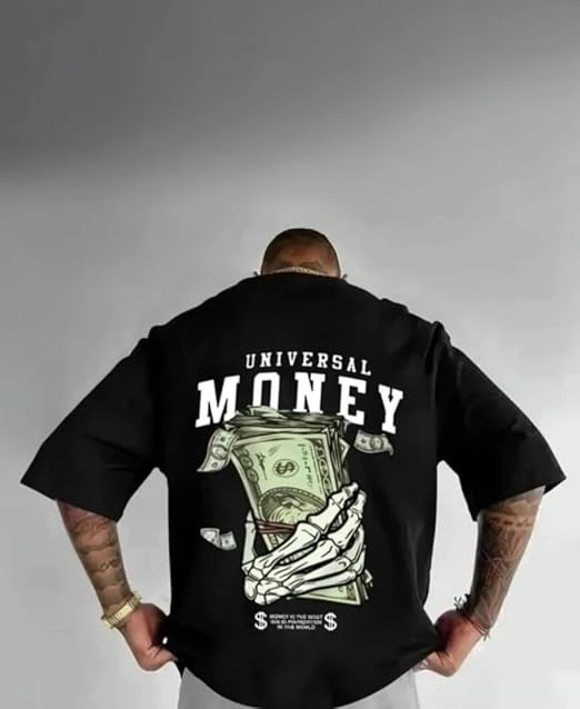 Earthwave Graphic Print Oversized Cotton T-Shirt, Half Sleeve, Round Neck, Casual Streetwear (in, Alpha, Small, Black)