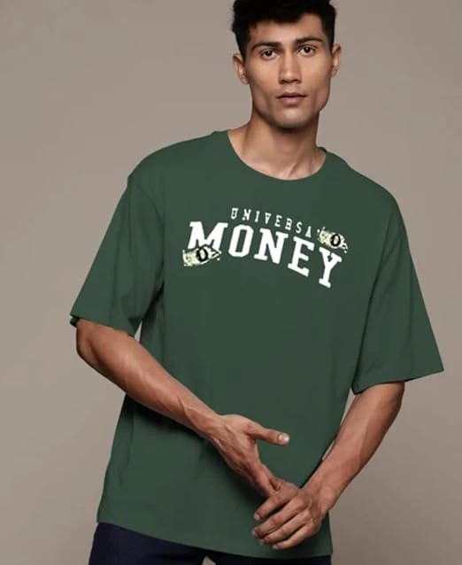 Earthwave Graphic Print Oversized Cotton T-Shirt, Half Sleeve, Round Neck, Casual Streetwear (in, Alpha, Medium, Olive Green)