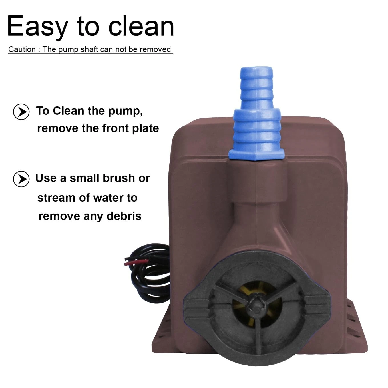 LOW ELECTRICITY CONSUMPTION *- This 220-240V/50 Hz affordable and useful cooler and fountain pump works at 40 watts which is good enough for all those households who are looking to save on their electricity bills. Apart from the motor face below down so that the maximum water adsorb is able to make high water flow.