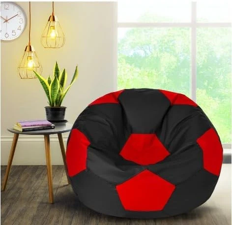 Faux Leather Double Colour Print Round Shape Bean Bag Cover Without Bean (Bean Bag03_Black & Red)
