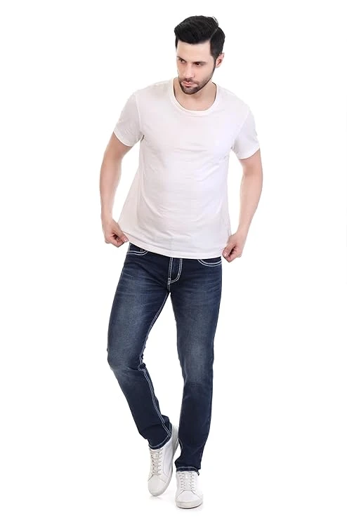 FS Forever Men's Slim Fit Denim Jeans, Medium Blue Wash, Casual Stretch Denim, Tapered Leg