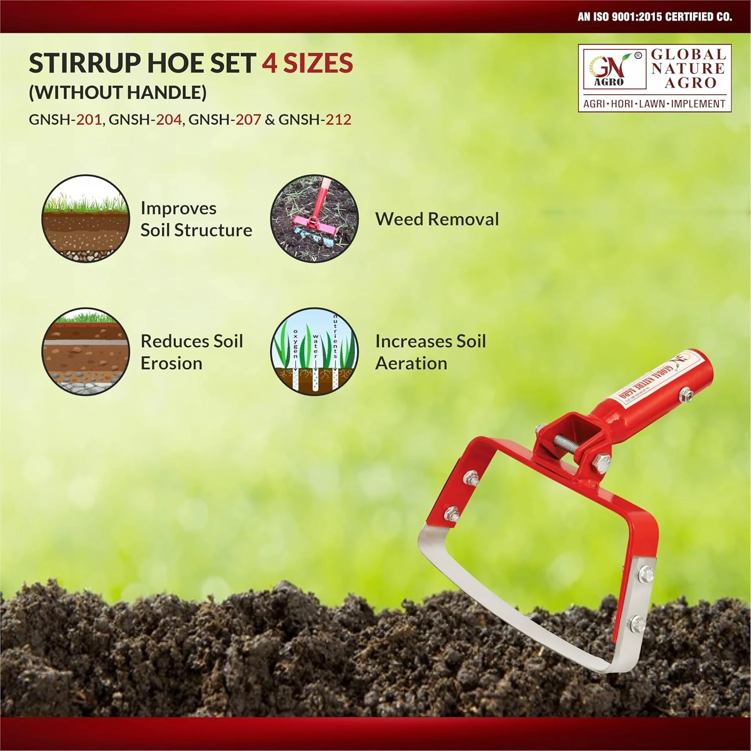 Introducing the Global Nature Agro Heavy Duty Manual Weeder, a robust and efficient tool designed for passionate gardeners and professional farmers alike. This 7.5-inch stirrup hoe is crafted with a sharp high carbon steel blade, making it perfect for tackling tough soil and weeds with ease. Whether you're maintaining a small garden or managing a large agricultural plot, this tool is your go-to solution for effective weeding and soil preparation.
