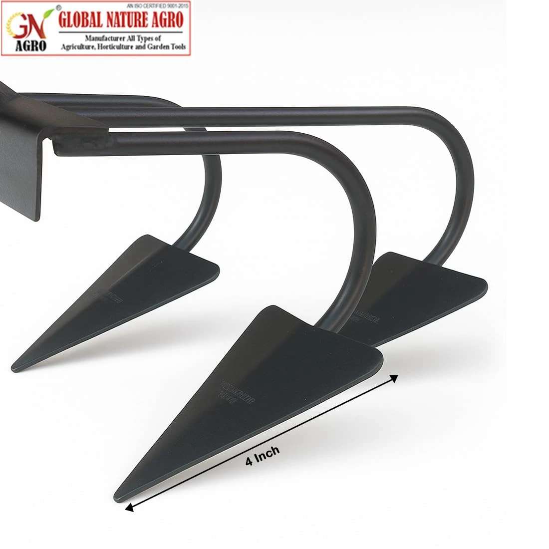 Global Nature Agro Heavy-Duty Push Pull Garden Weeder Tool | 3-Tine Cultivator with Sharp Hoe Blades (3-Tines, 1, Pack)