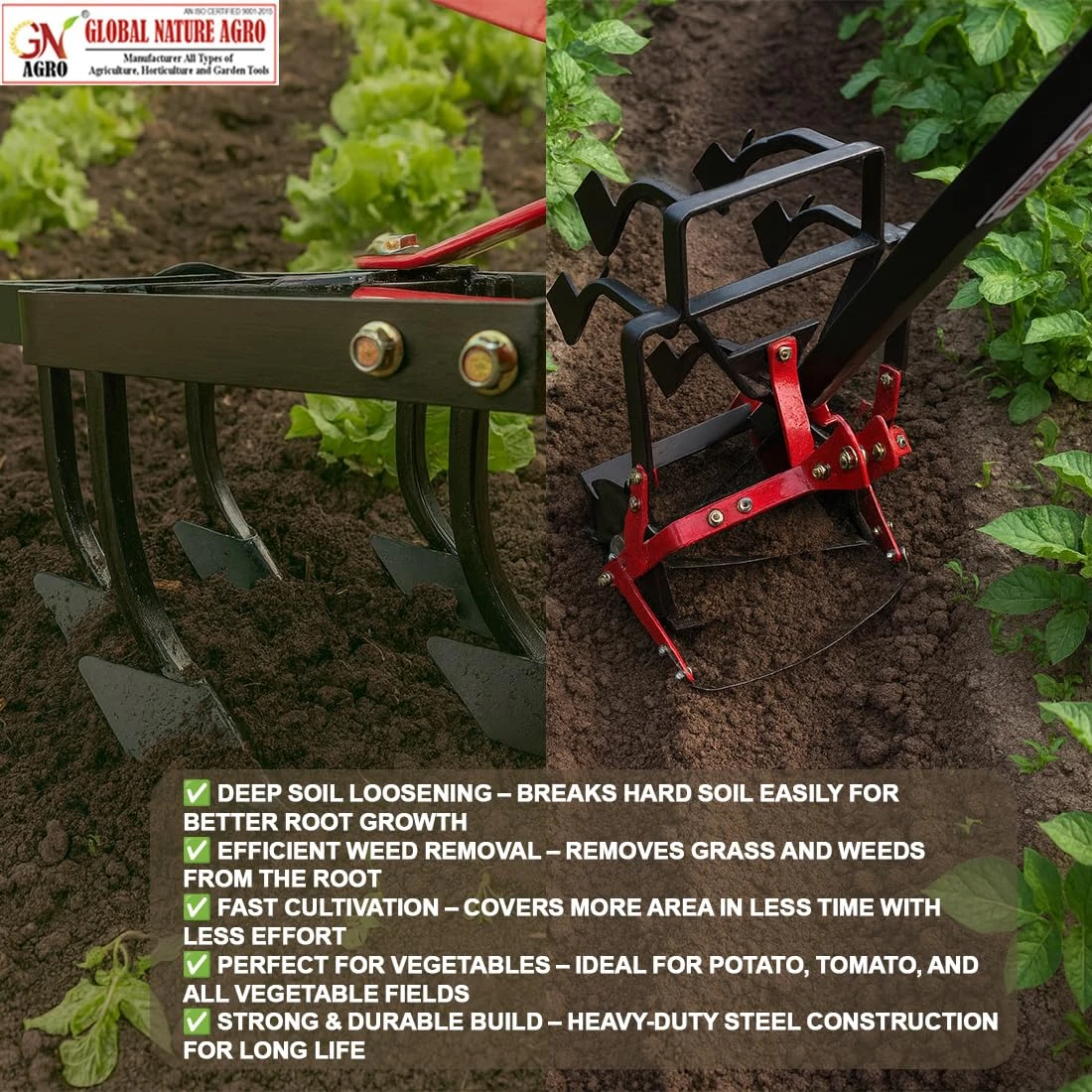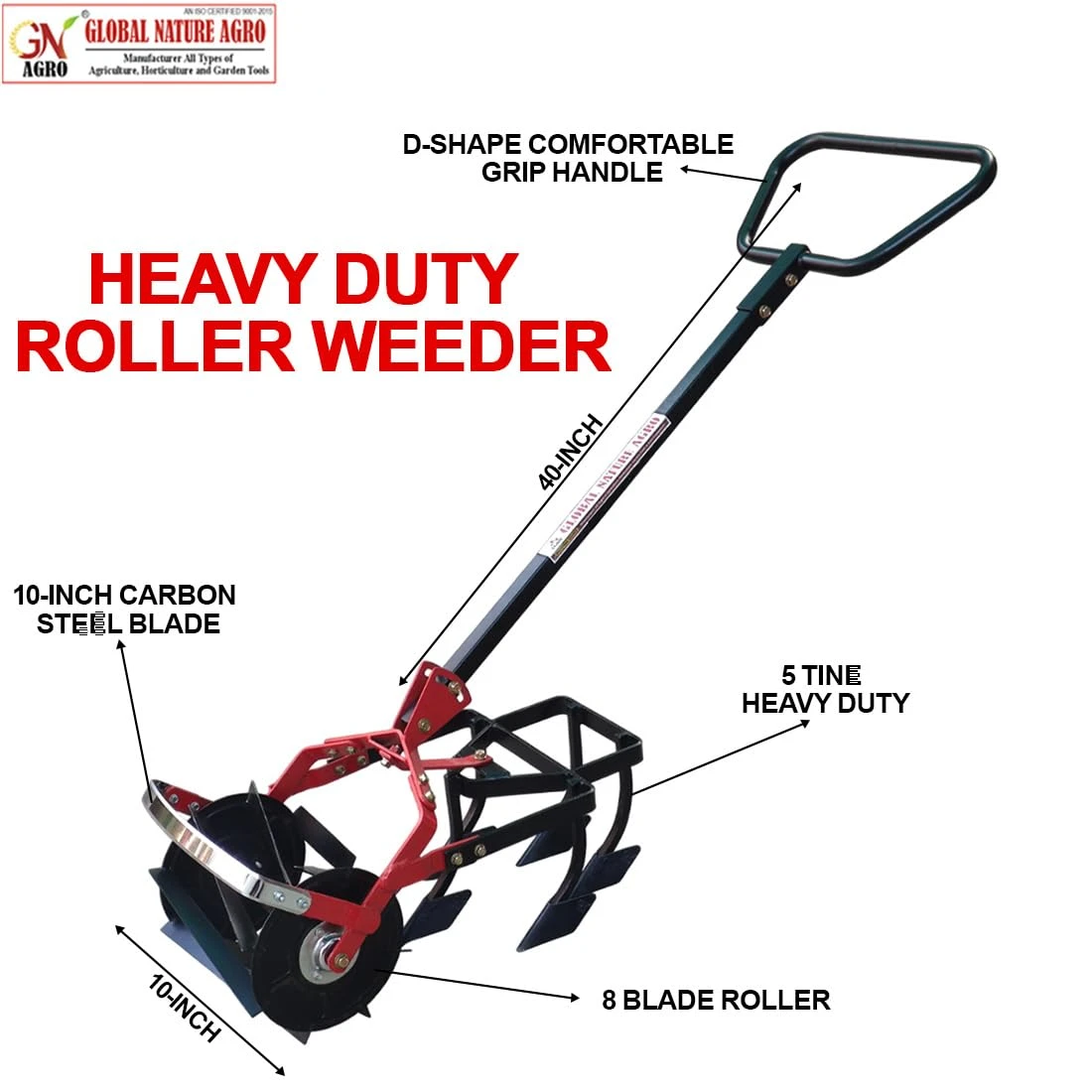Introducing the Global Nature Agro Heavy Duty Roller Weeder, your ultimate companion for efficient farming and gardening. Designed with precision and durability in mind, this tool features a 10-inch carbon steel blade, an 8-blade roller, and a 5-tine cultivator with a D-shape handle. Perfect for both professional farmers and gardening enthusiasts, this weeder ensures your soil is aerated and weed-free, enhancing plant growth and productivity.