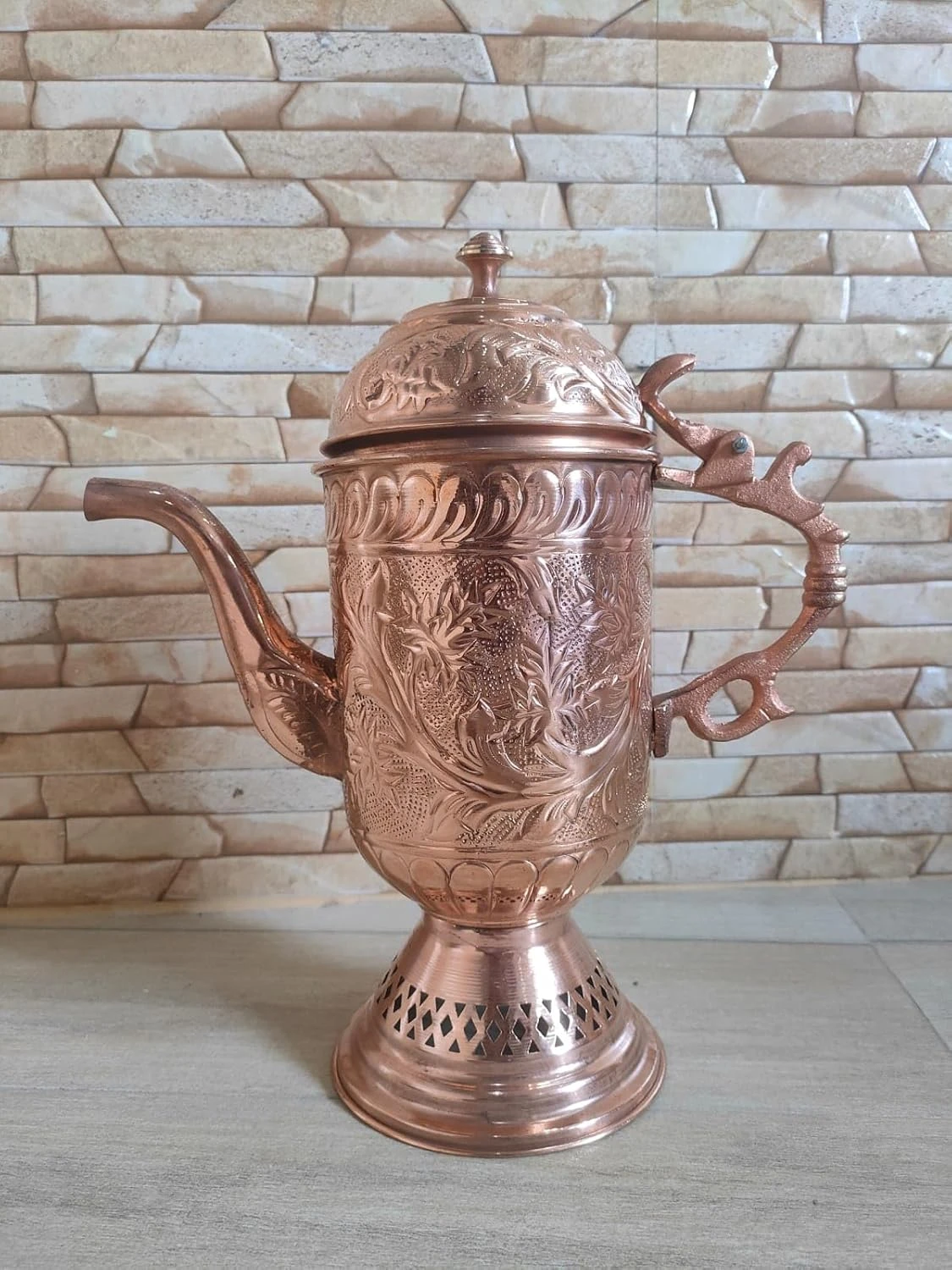 Add timeless elegance and cultural charm to your home with this beautifully crafted Handmade Copper Jug with Lid, inspired by the traditional Kashmiri Samovar design. This exquisite jug set combines heritage craftsmanship with modern utility, making it a perfect choice for both décor and everyday use.