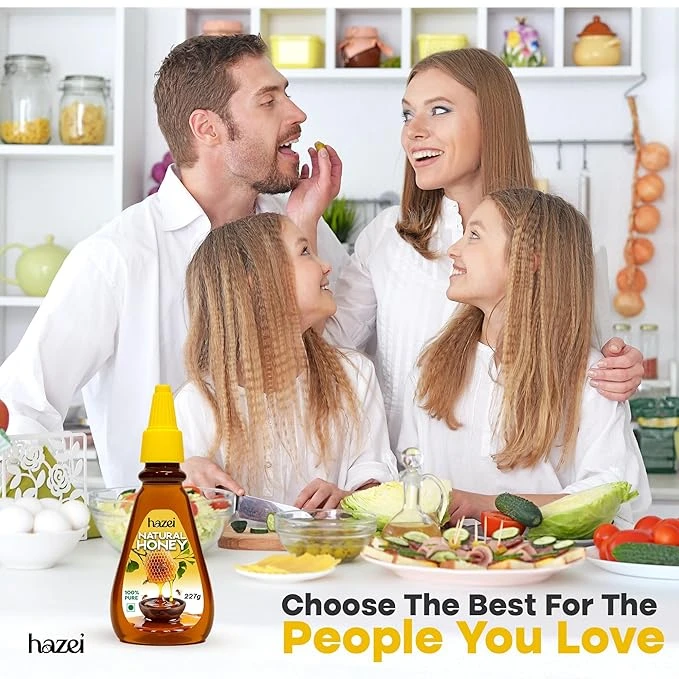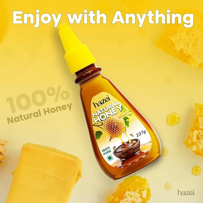 Hazei Honey Squeezy Bottle 227g - Easy Pour, No Mess, 100% Pure & Natural Honey | Unprocessed Natural shahad | Healthy, Rich in Vitamins and Minerals for Energy & Wellness | Daily Use (Pack of 2)
