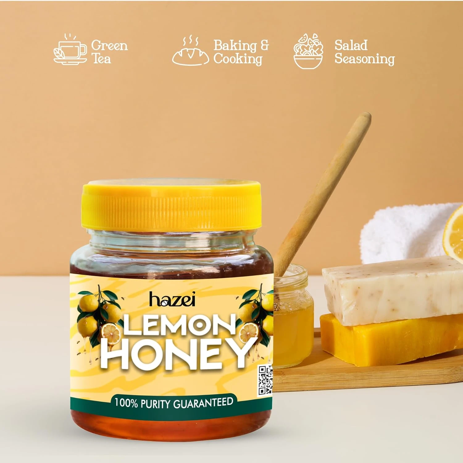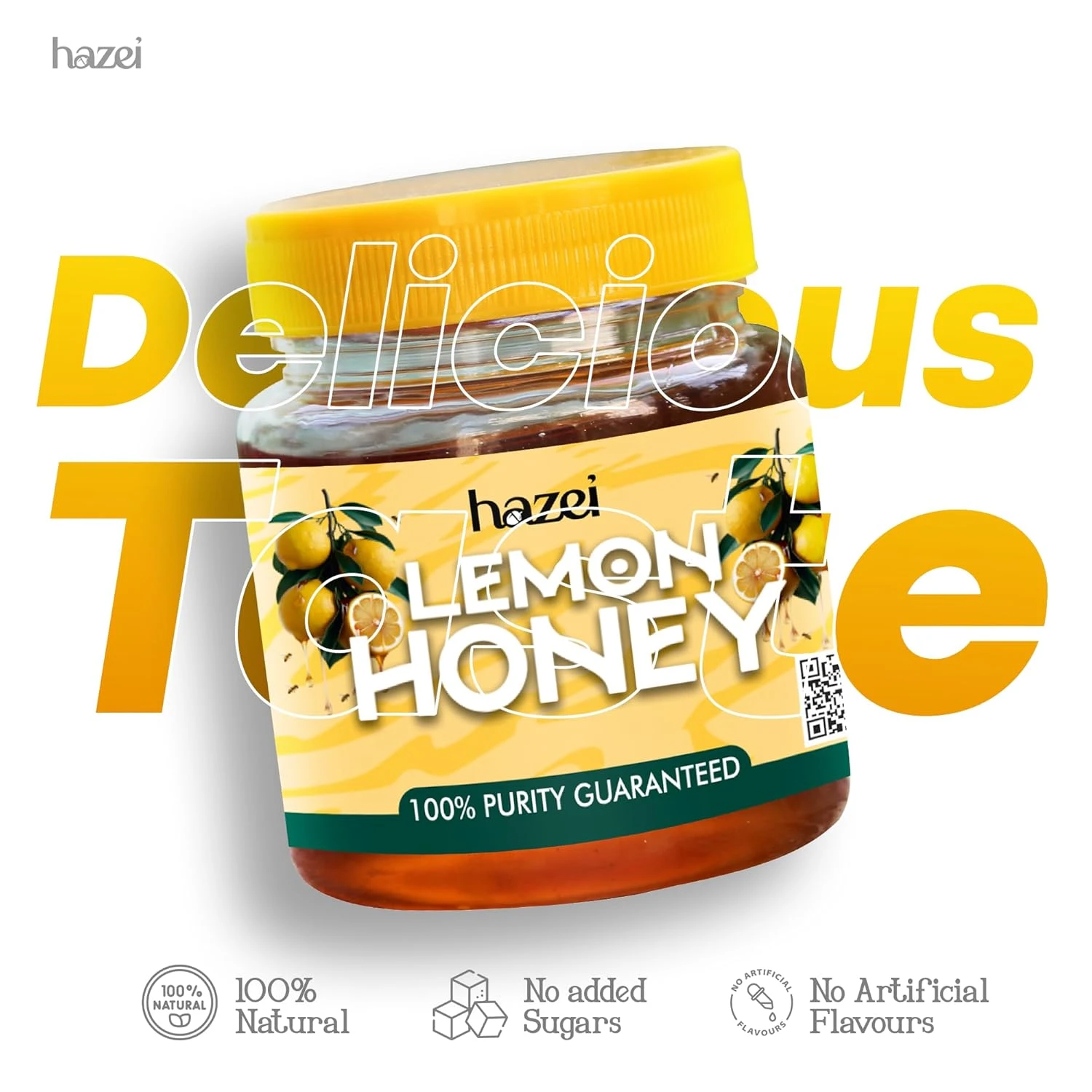 Hazei Lemon Honey 500g - Unique Refreshing Taste, Great for Weight Management and Fitness | 100% Pure & Natural Honey | Unprocessed Natural shahad | Healthy, Rich in Vitamins and Minerals