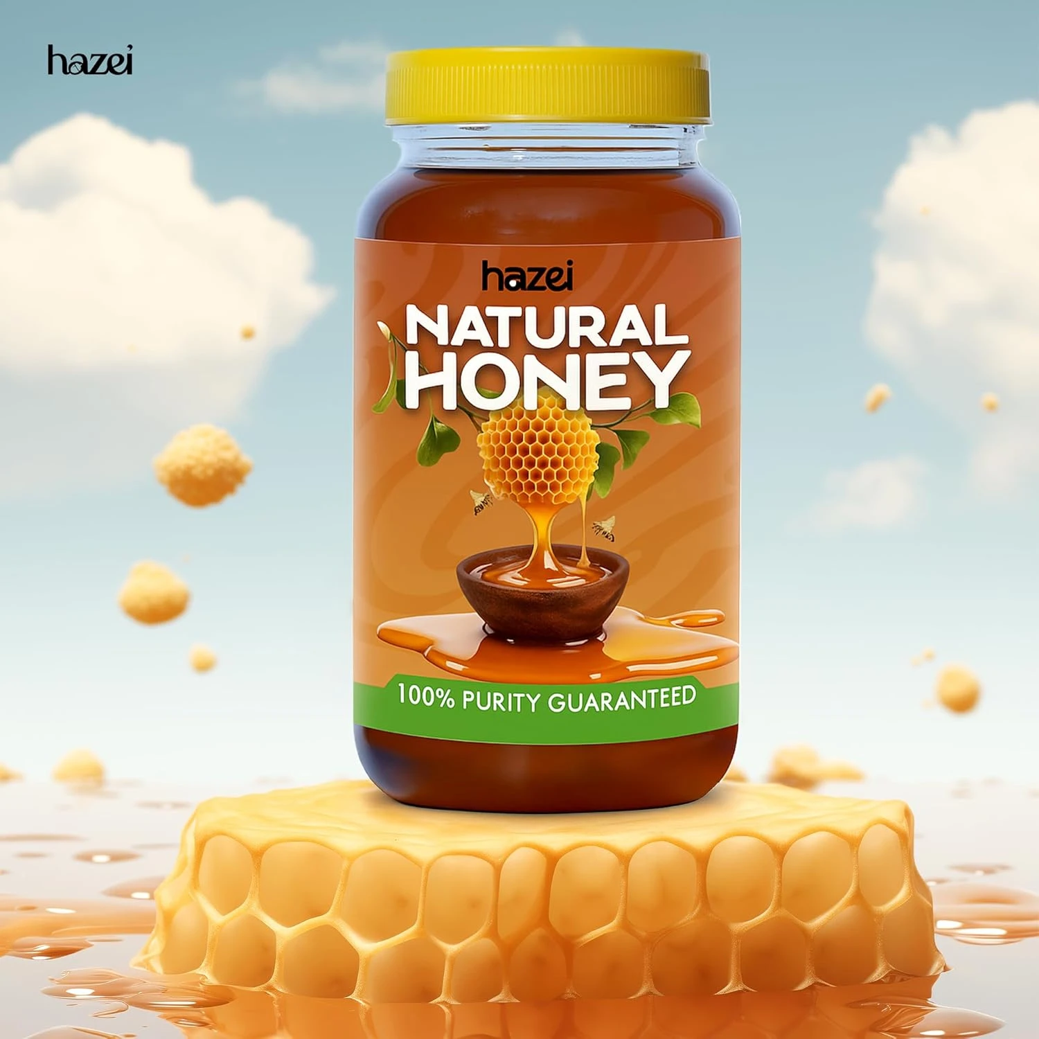 • 100% Pure & Natural Honey - Hazei Natural Honey is carefully sourced and unprocessed to retain its natural aroma, flavor, and nutrients. It delivers the authentic sweetness of nature without artificial additives or processing. With its golden color, thick consistency, and delightful taste, this honey enhances both traditional and modern recipes, offering a premium and authentic flavor experience.