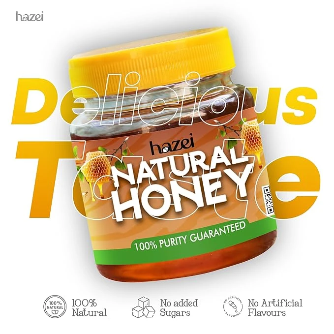 • 100% Pure & Natural Honey - Hazei Natural Honey is carefully sourced and unprocessed to retain its natural aroma, flavor, and nutrients. It delivers the authentic sweetness of nature without artificial additives or processing. With its golden color, thick consistency, and delightful taste, this honey enhances both traditional and modern recipes, offering a premium and authentic flavor experience.