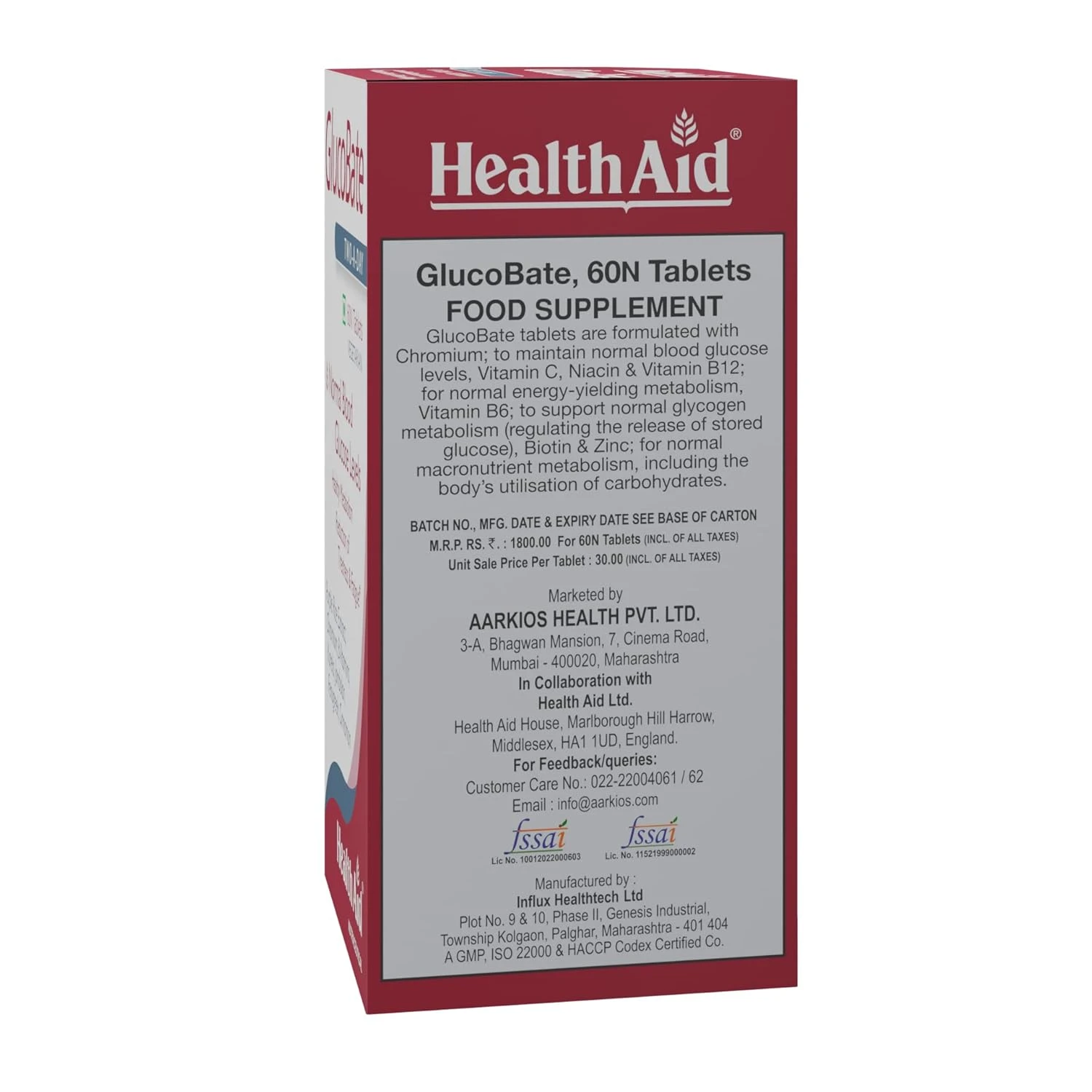 HealthAid GlucoBate Tablets | Supports Normal Blood Glucose Levels & Energy Metabolism | With 11 Herbs, Vitamins & Minerals | Helps Reduce Tiredness & Fatigue | 60 Vegetarian Tablets