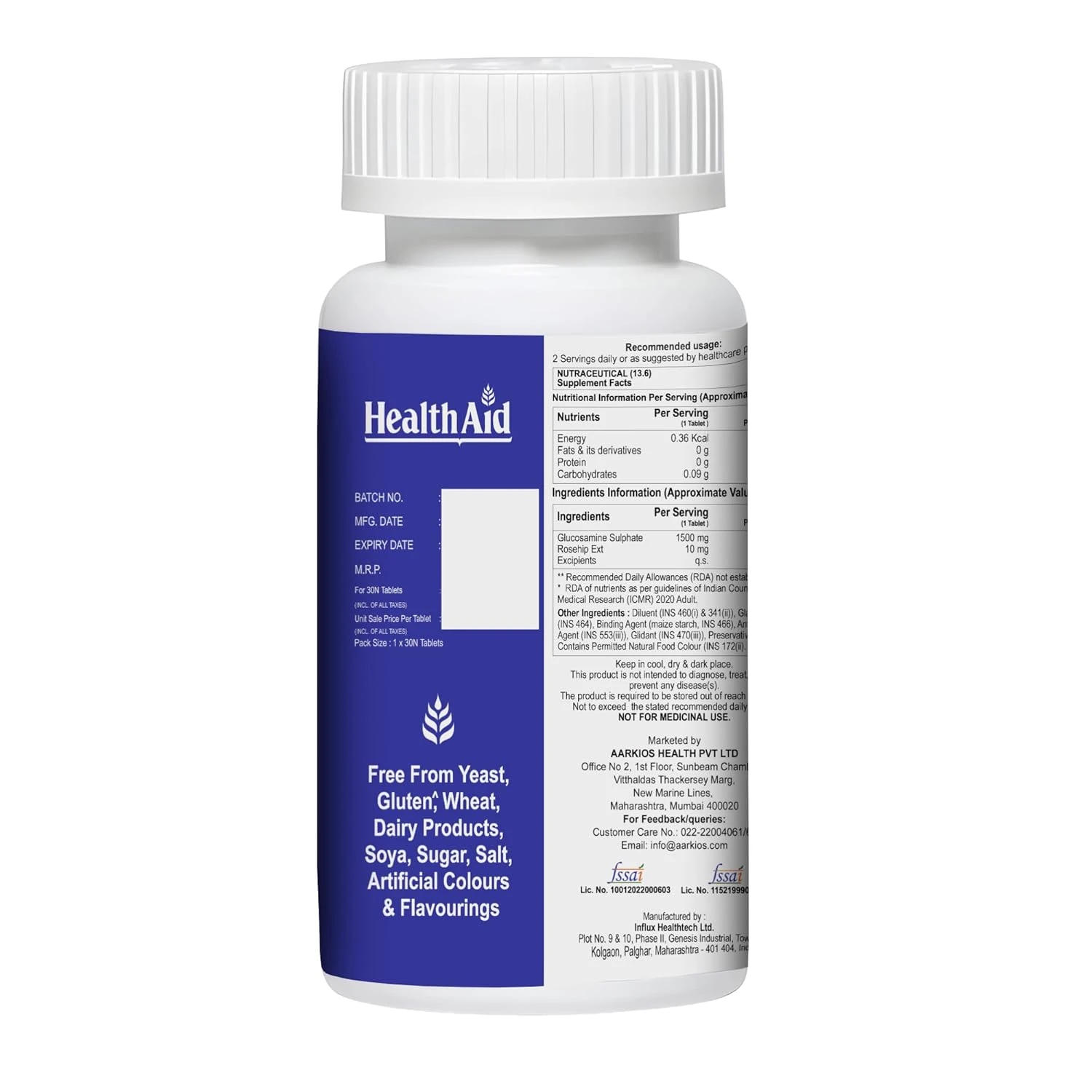 HealthAid Glucosamine Sulphate 1500mg – 30 Tablets | Supports Joint Health, Mobility & Flexibility | Helps Maintain Healthy Cartilage, Muscles & Ligaments | For Men & Women
