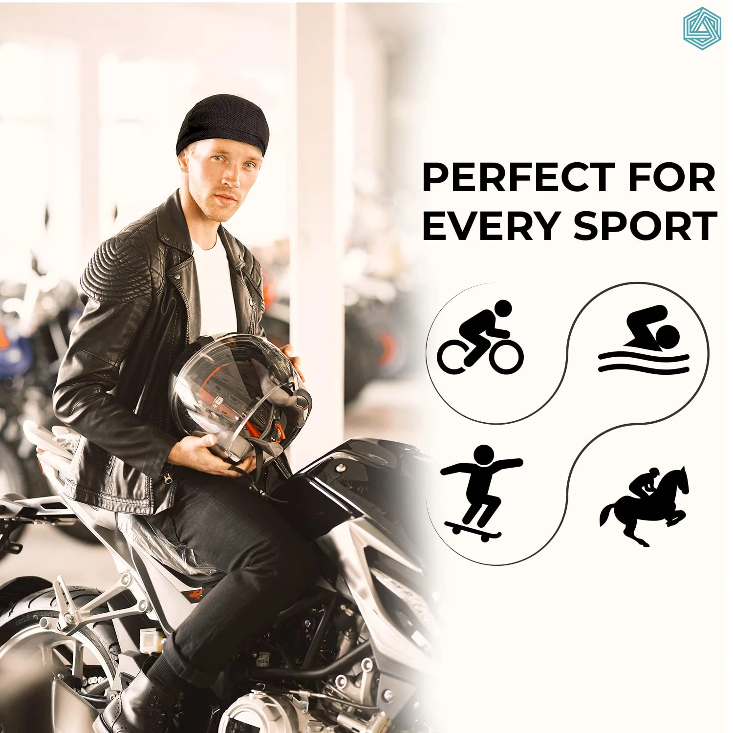 Helmet Skull Caps Bike Polycotton Head Caps Hair Inner Helmet Cover Cap for Bikers Sweat Cooling Skull Cap for Cycling - Black Pack of 1, for Men