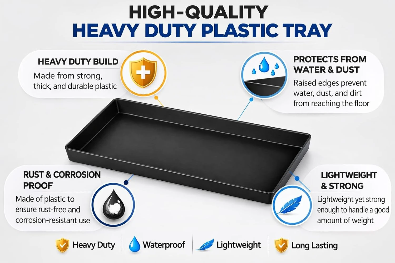 Inverter Battery Tray for Tall Tubular Battery (Black) – Rectangular Acid Spill Protection Stand, Heavy Duty Multipurpose Base for Plant Pots, Gardening, Water Drip & Floor Protection