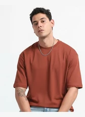 Kepto Mens Solid Oversized T-shirt- Brick Size Medium