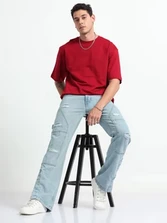 Kepto Mens Solid Oversized T-shirt- Red Size Medium
